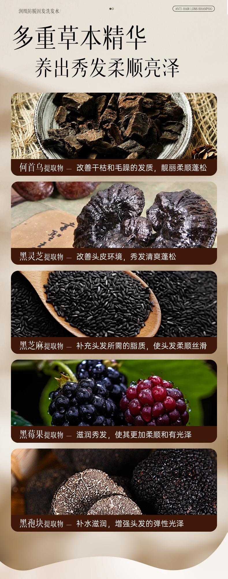 black ganoderma lucidum polygonum multiflorum shampoo 500ml
