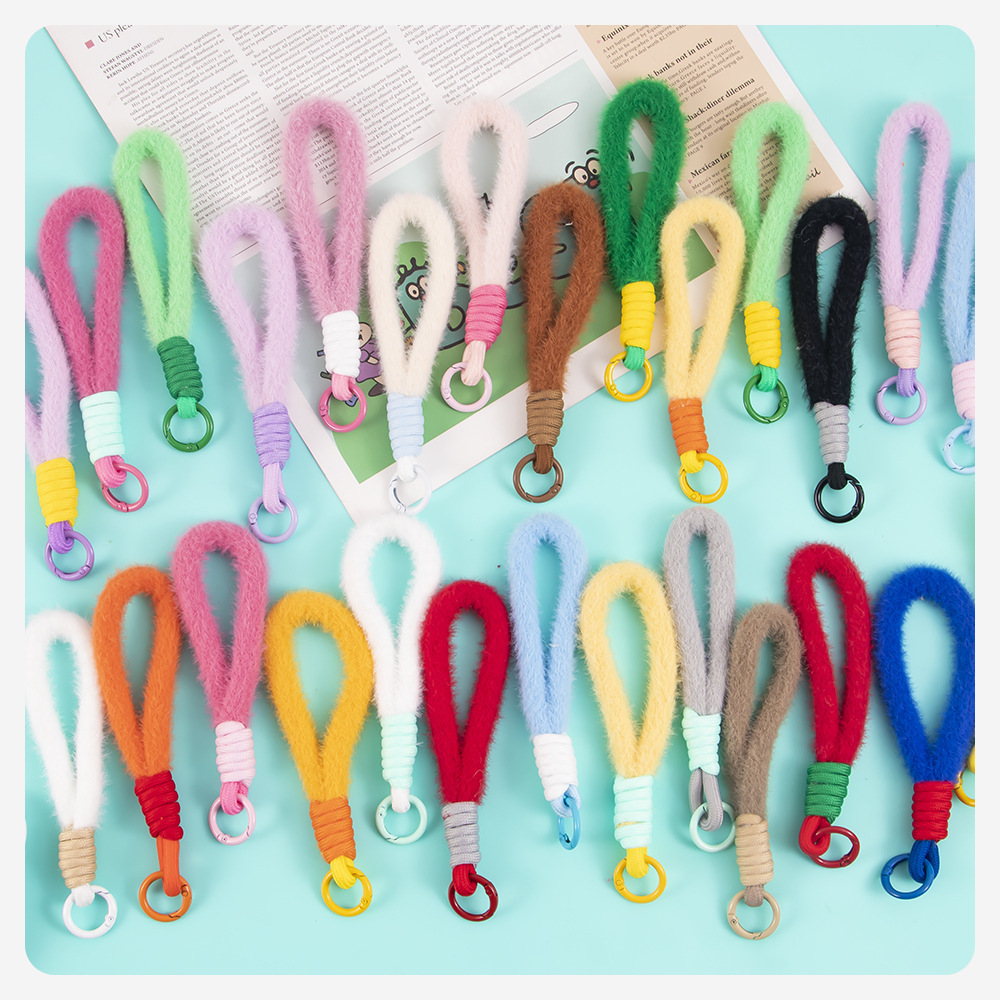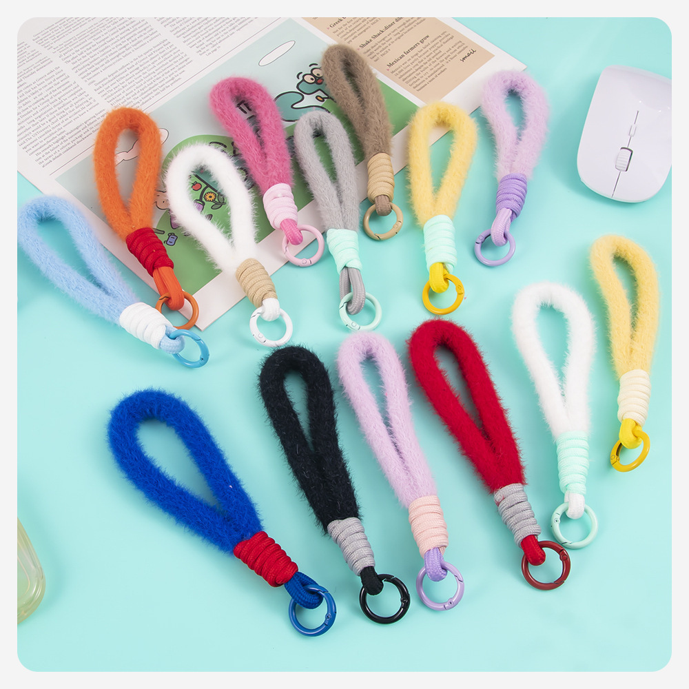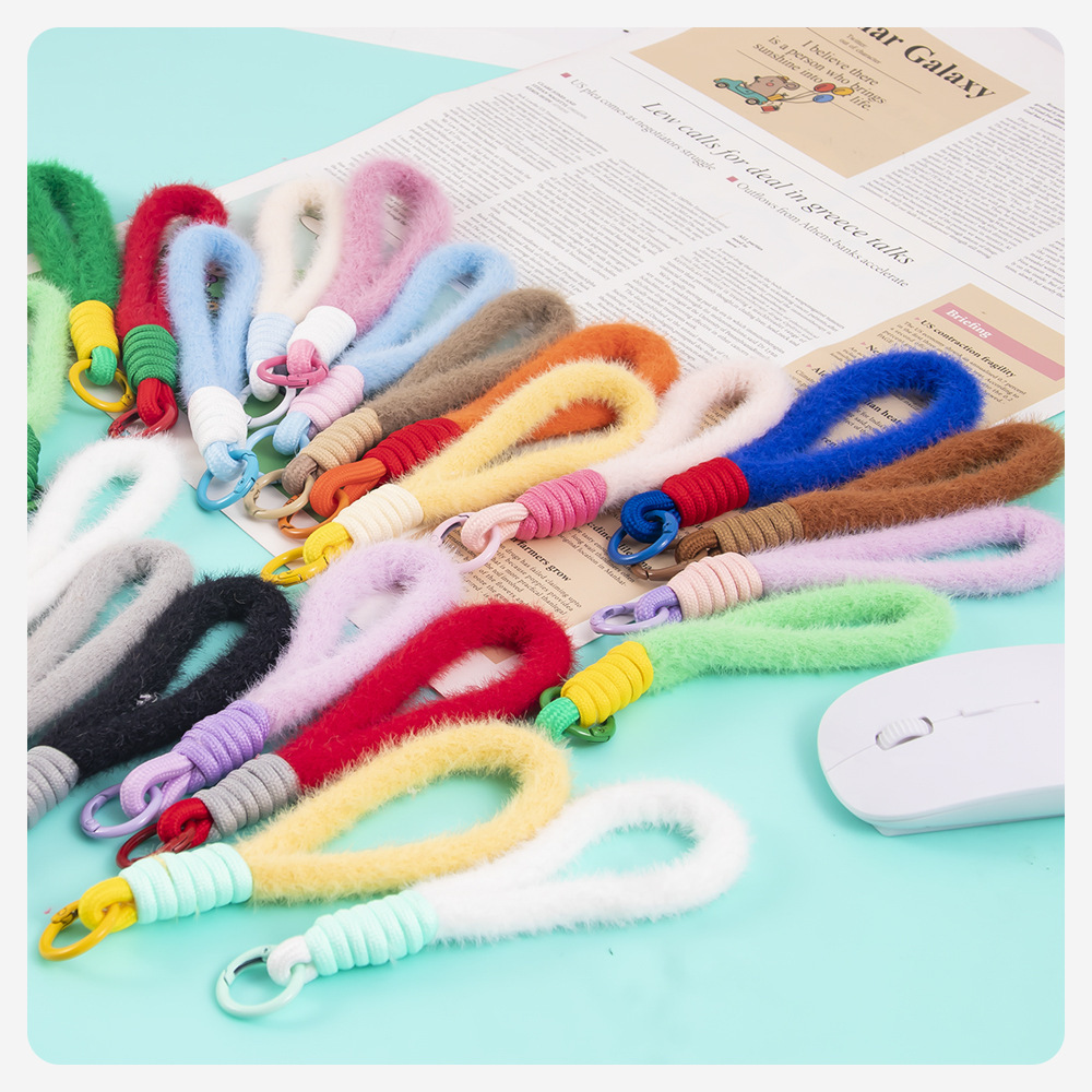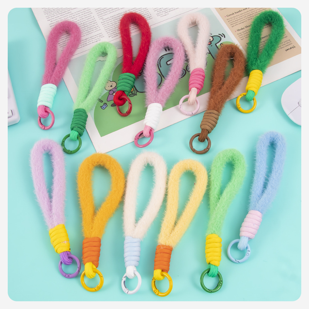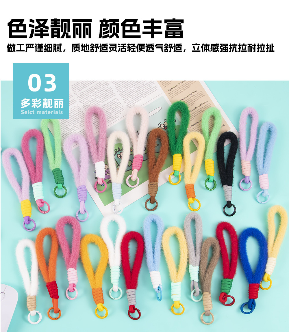 colorful plush short phone keychain lanyard women's fashion xingx wool baby doll hanging jewelry accessories 中文版