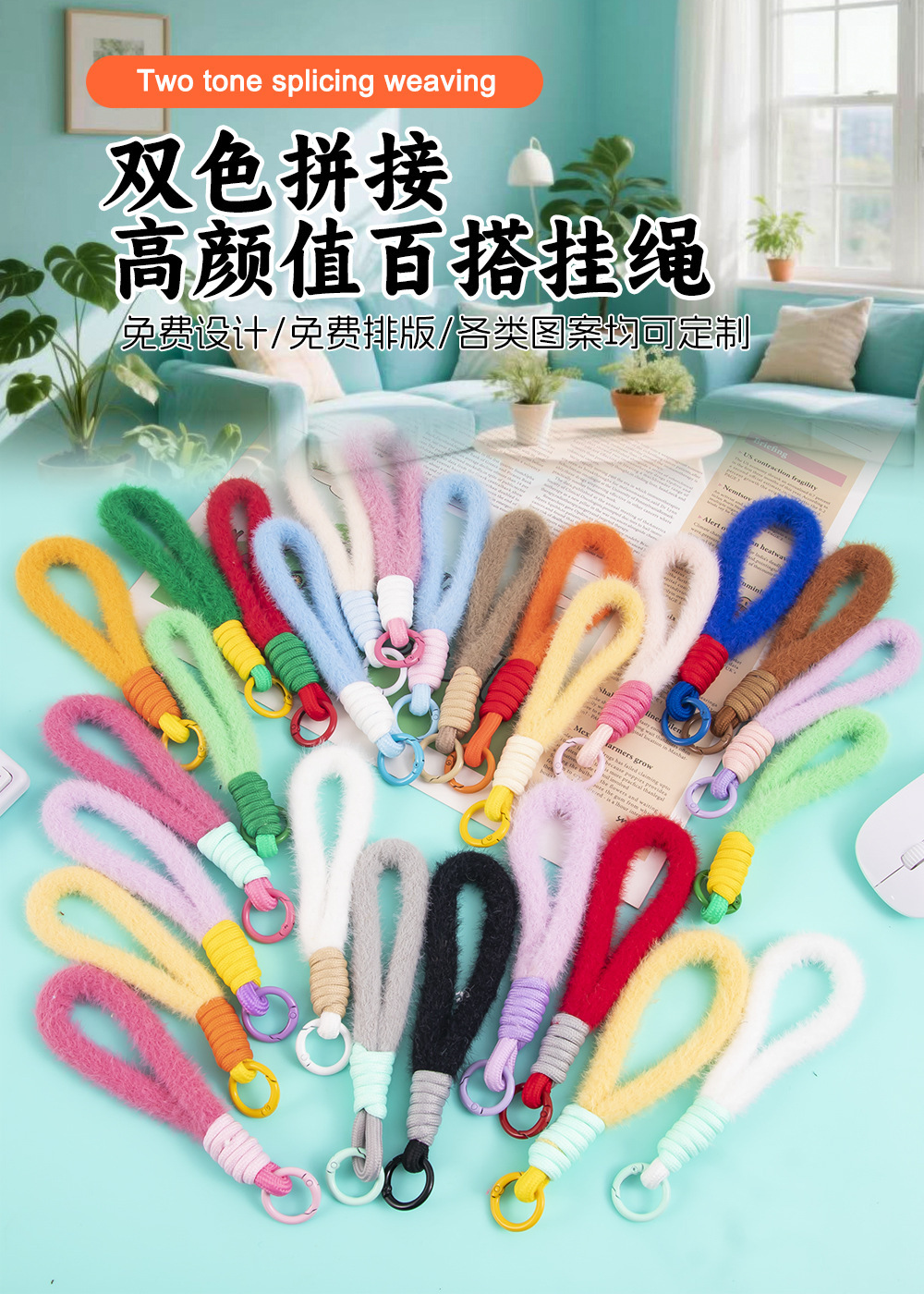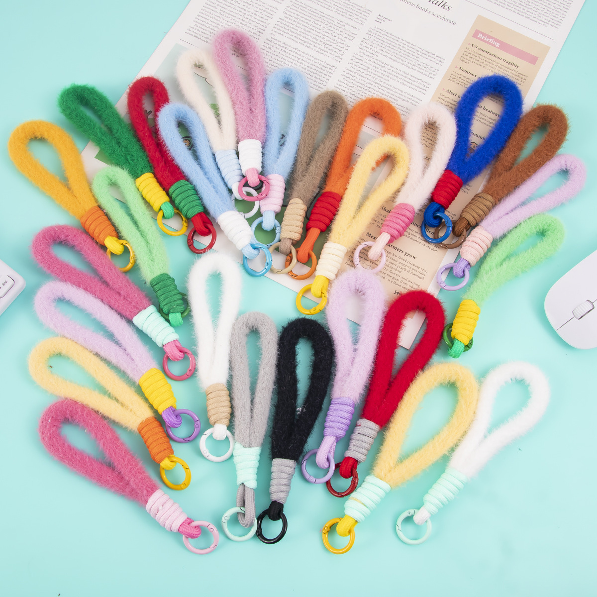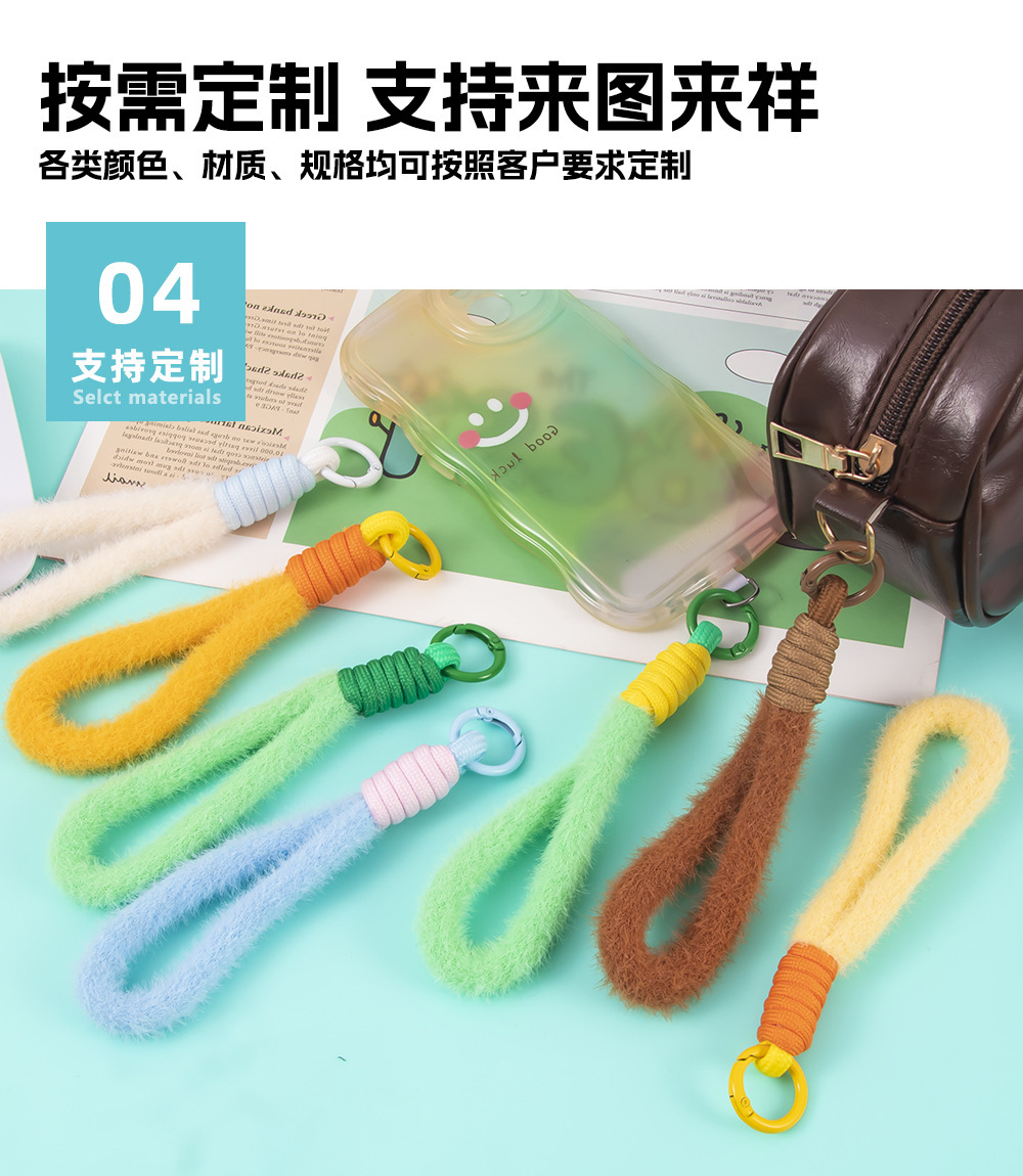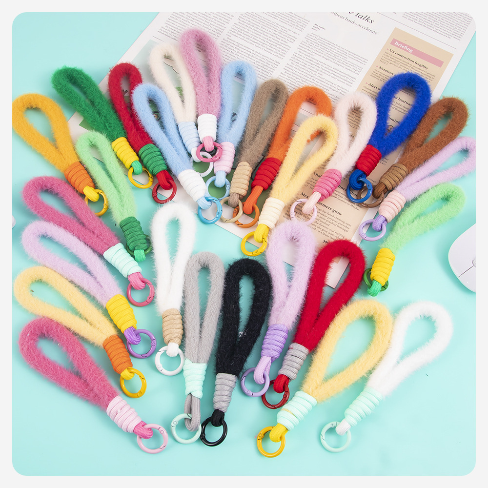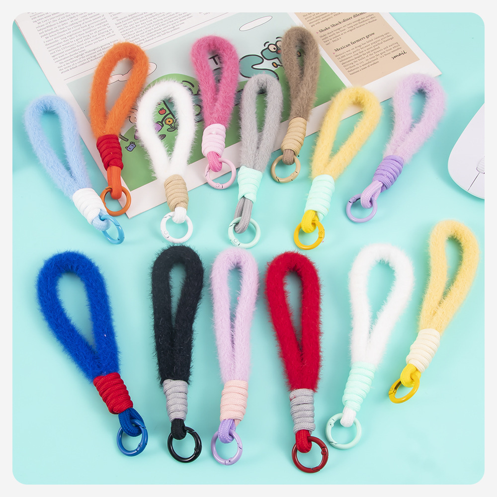 colorful plush short phone keychain lanyard women's fashion xingx wool baby doll hanging jewelry accessories 中文版