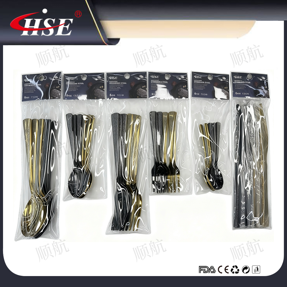 stainless steel tableware spoon fork dessert spoon knife steak knife titanium titanium black laser supermarket foreign trade wholesale 中文版