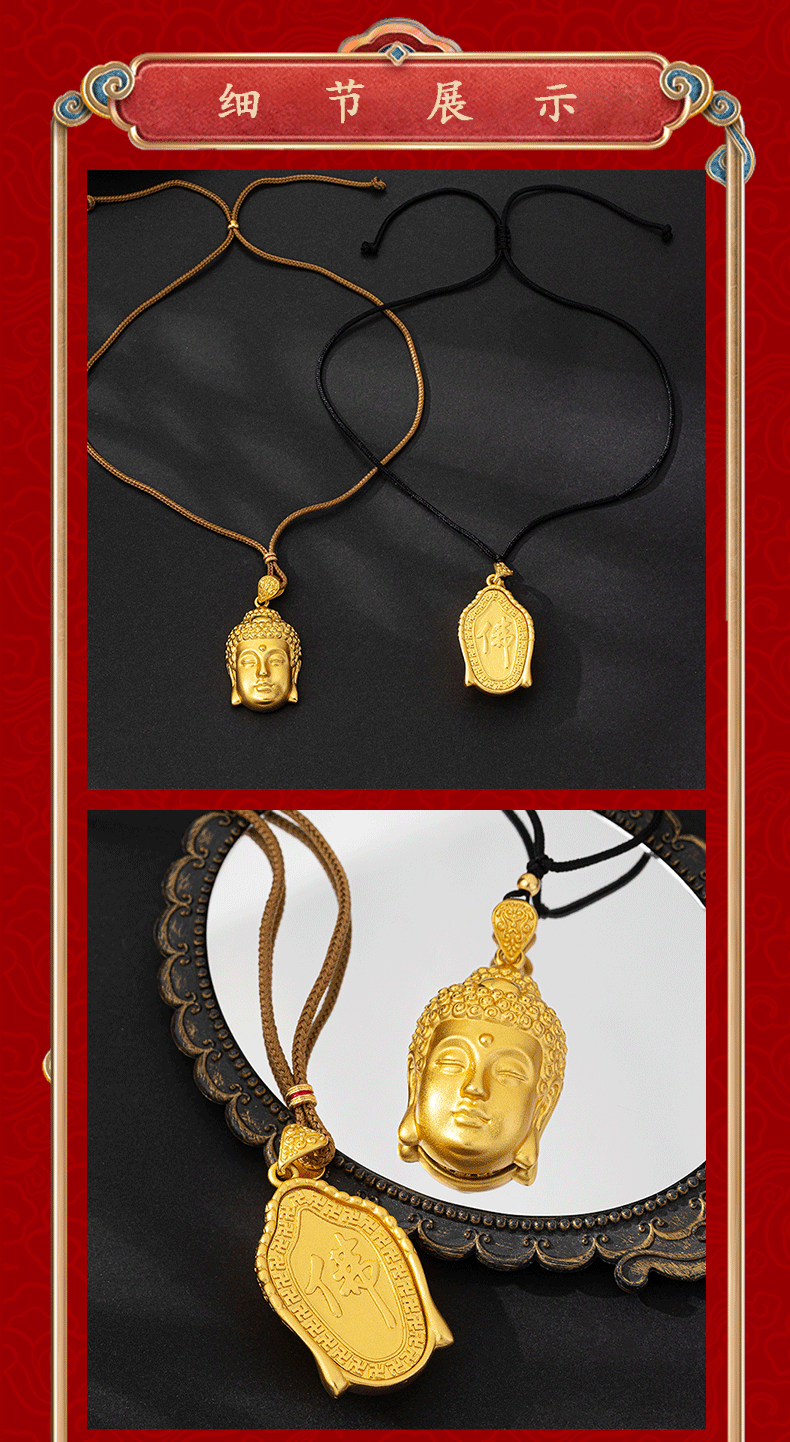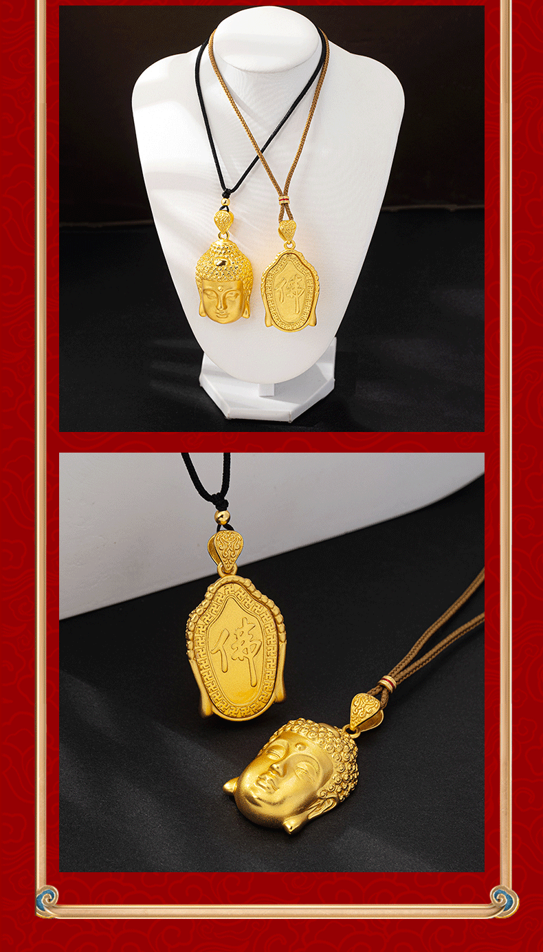 x4046 buddha head necklace-black rope
