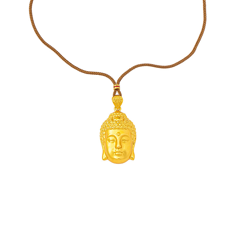 x4043 buddha head necklace-brown rope