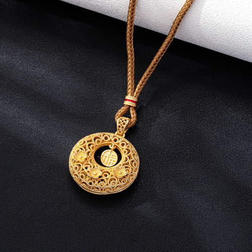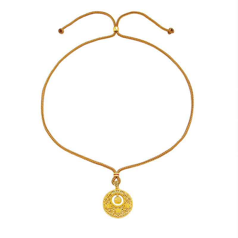 x4117 flower dreamcatcher fu necklace-woven yellow string