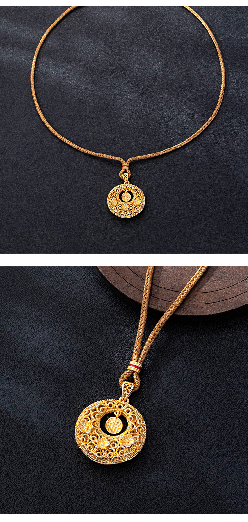 x4118 flower dreamcatcher fu necklace-woven black rope