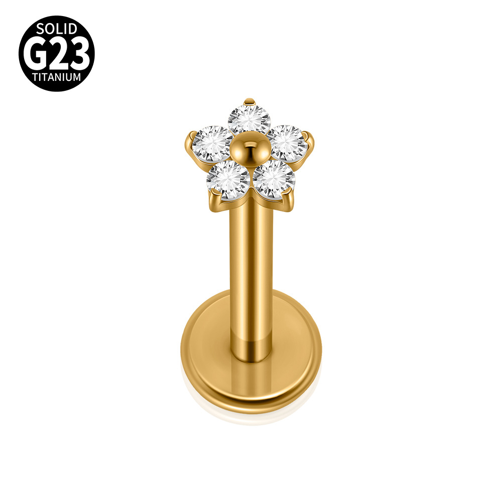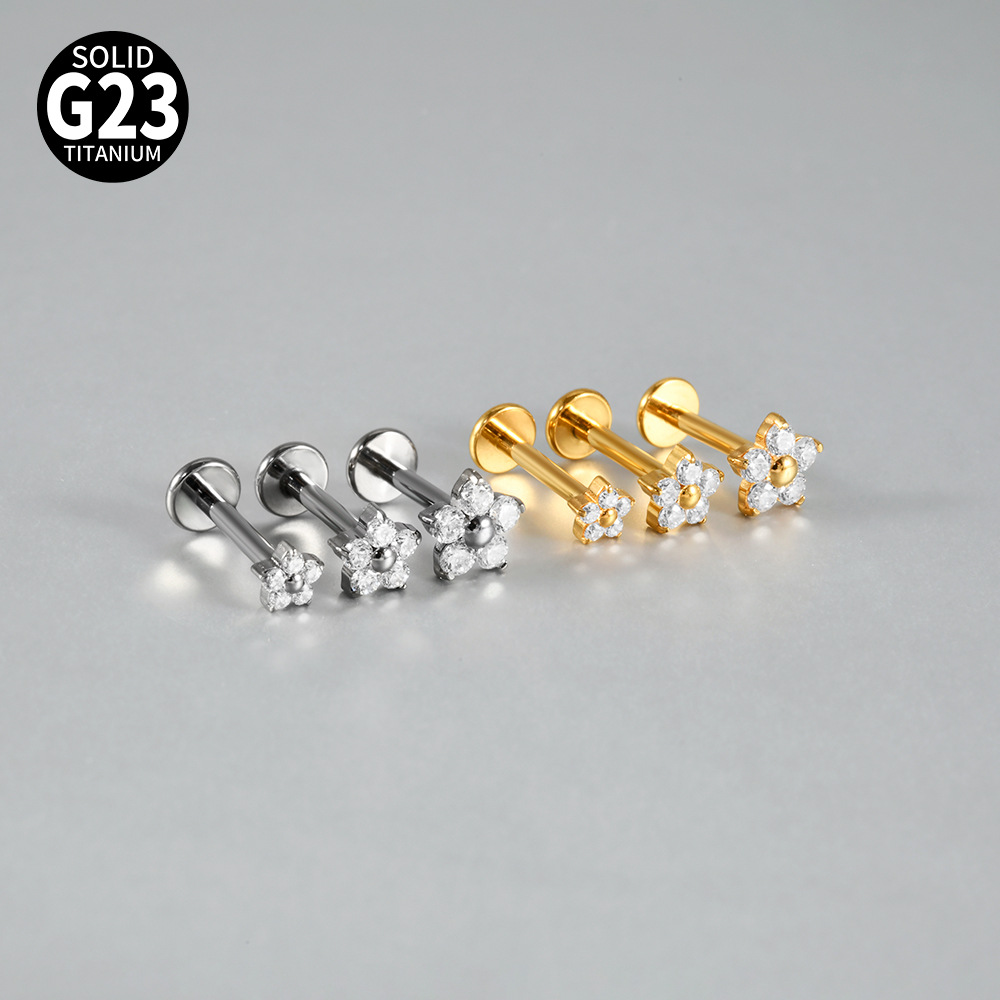 名称:G23/F136钛内牙唇钉白锆花朵唇环 T形平底穿刺耳骨钉饰品