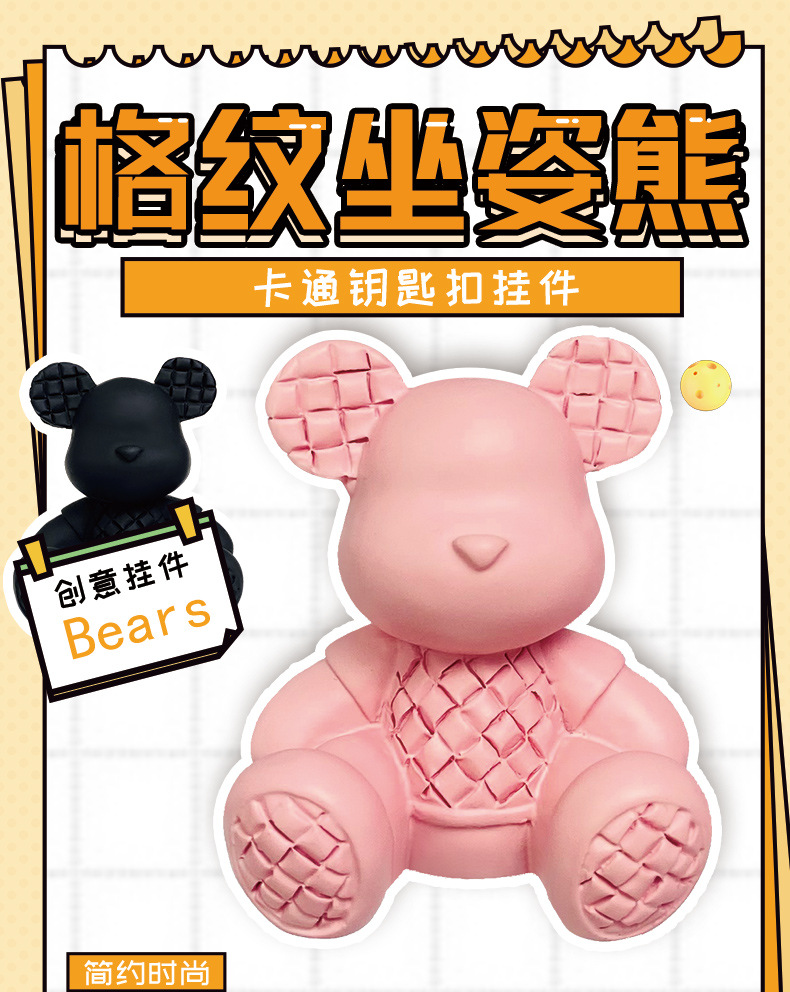 plaid sitting bear-pink