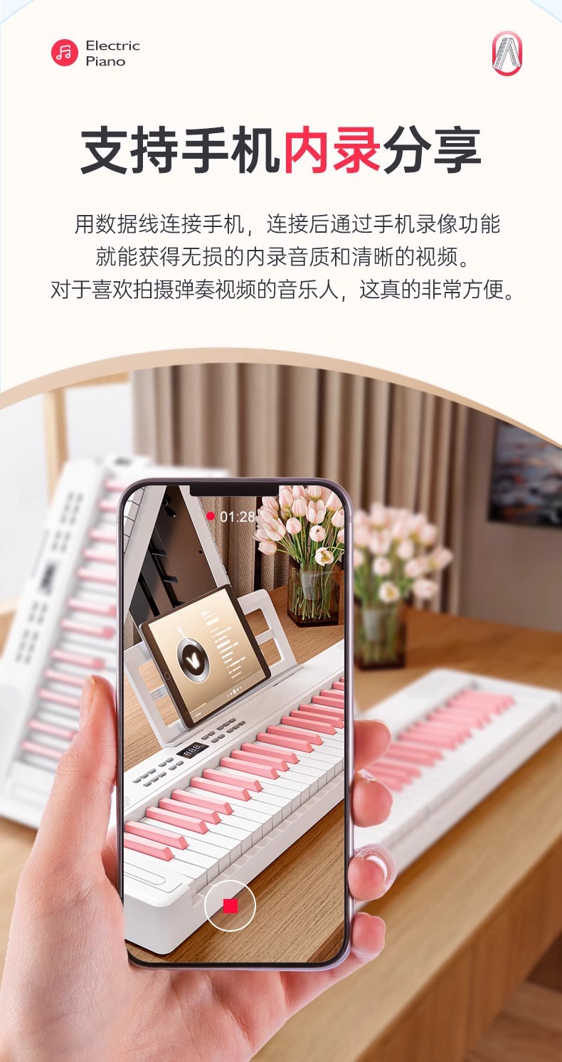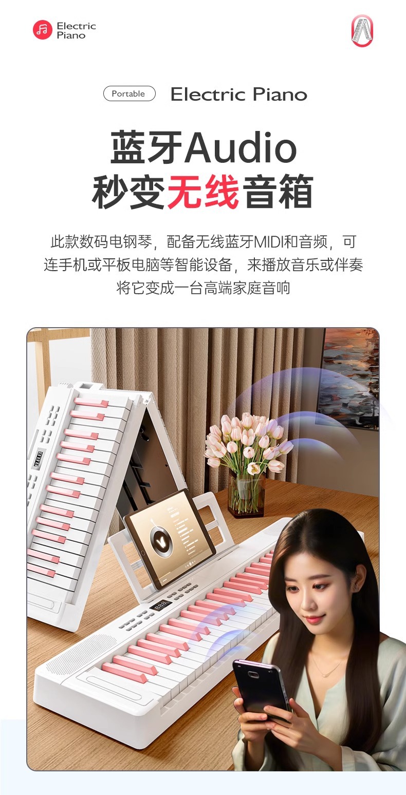 61-key folding piano bluetooth [girl pink]]