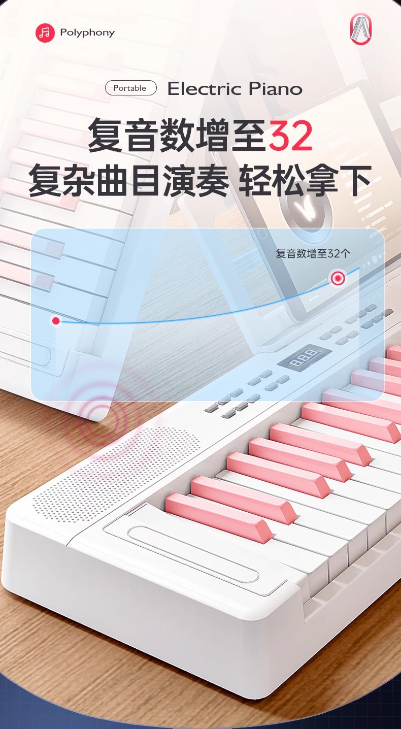 61-key folding piano basic style [girl pink]]