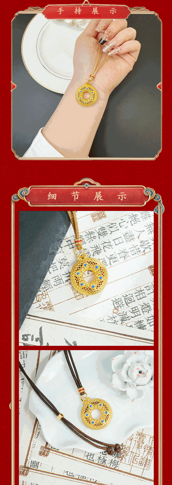 x3853 compass necklace brown rope