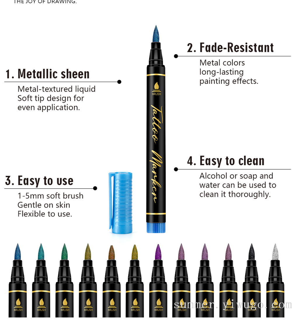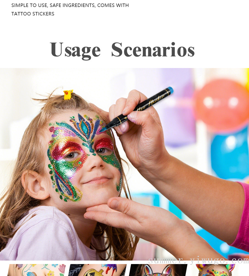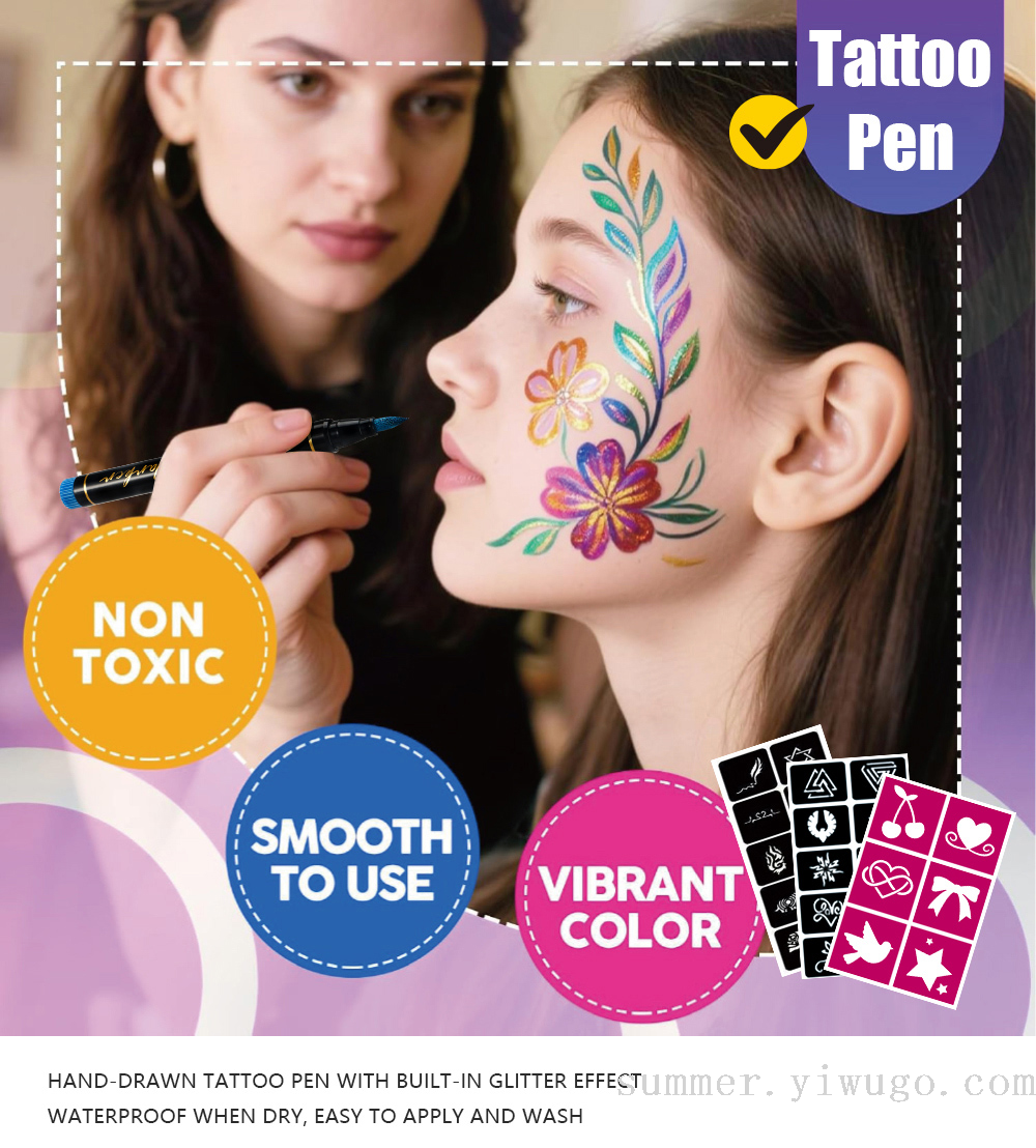 cross-border hot sale tattoo marker pen body fluoresent marker with accessories hollow stickers children's painting marker pen spot 中文版