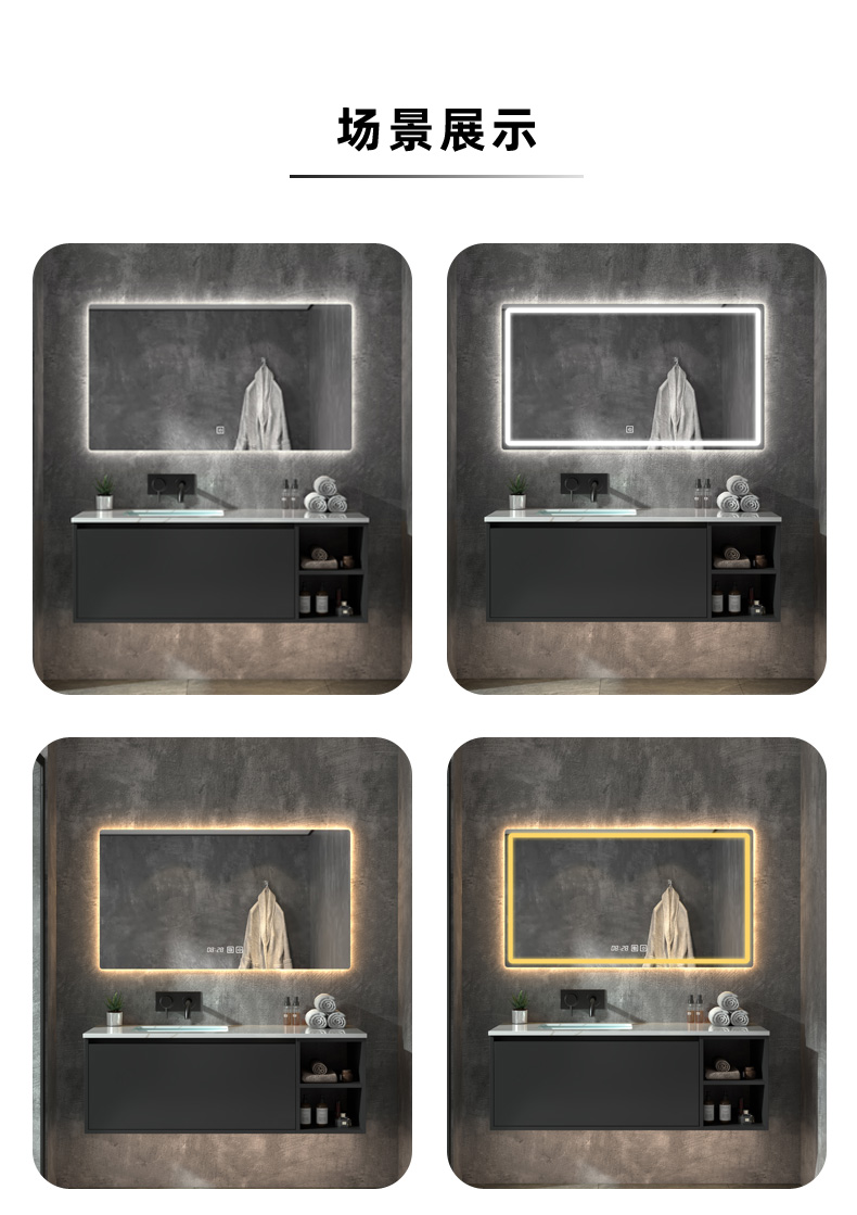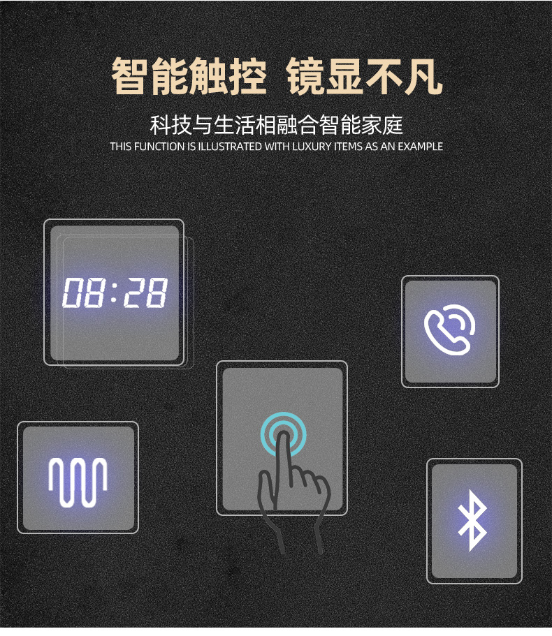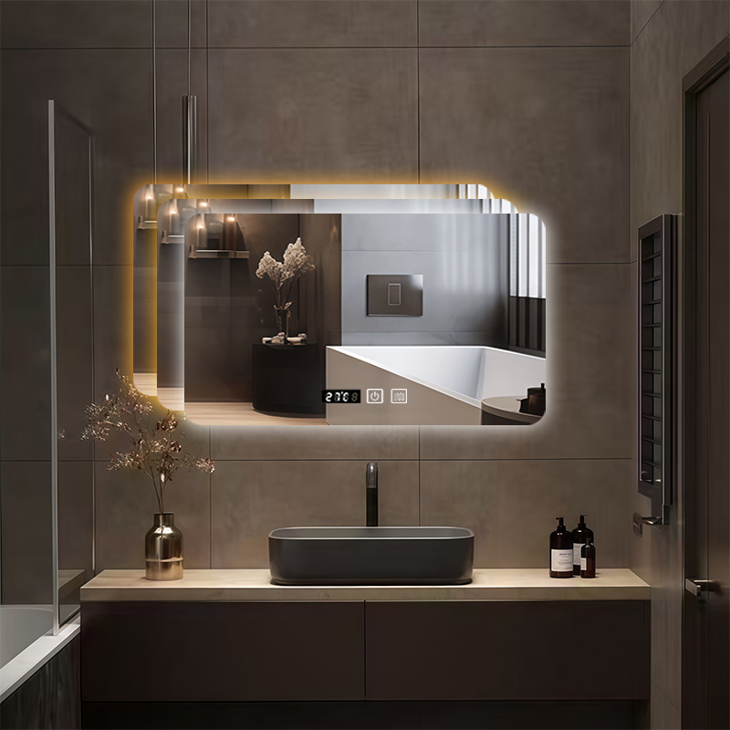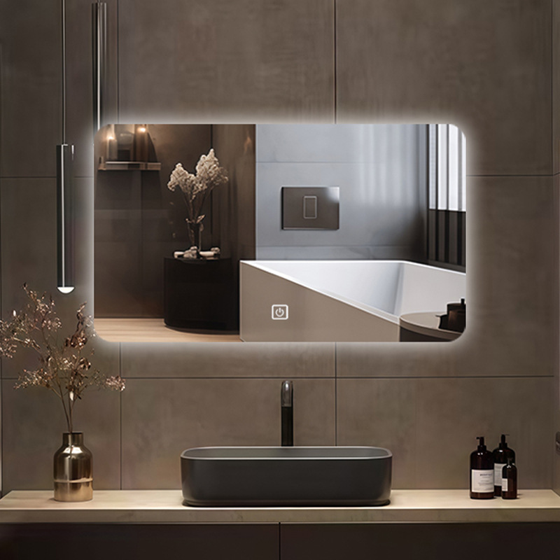 bathroom mirror bathroom mirror touch screen led light luminous makeup wall hanging anti-fog simple smart mirror 中文版