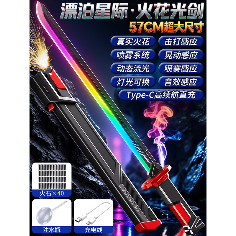 57cm super large spark sheath light sword-with spray [flame red] 40 flint