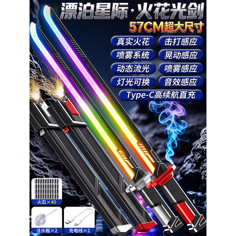57cm super large spark sheath light sword-with spray [flame red] 20 flint