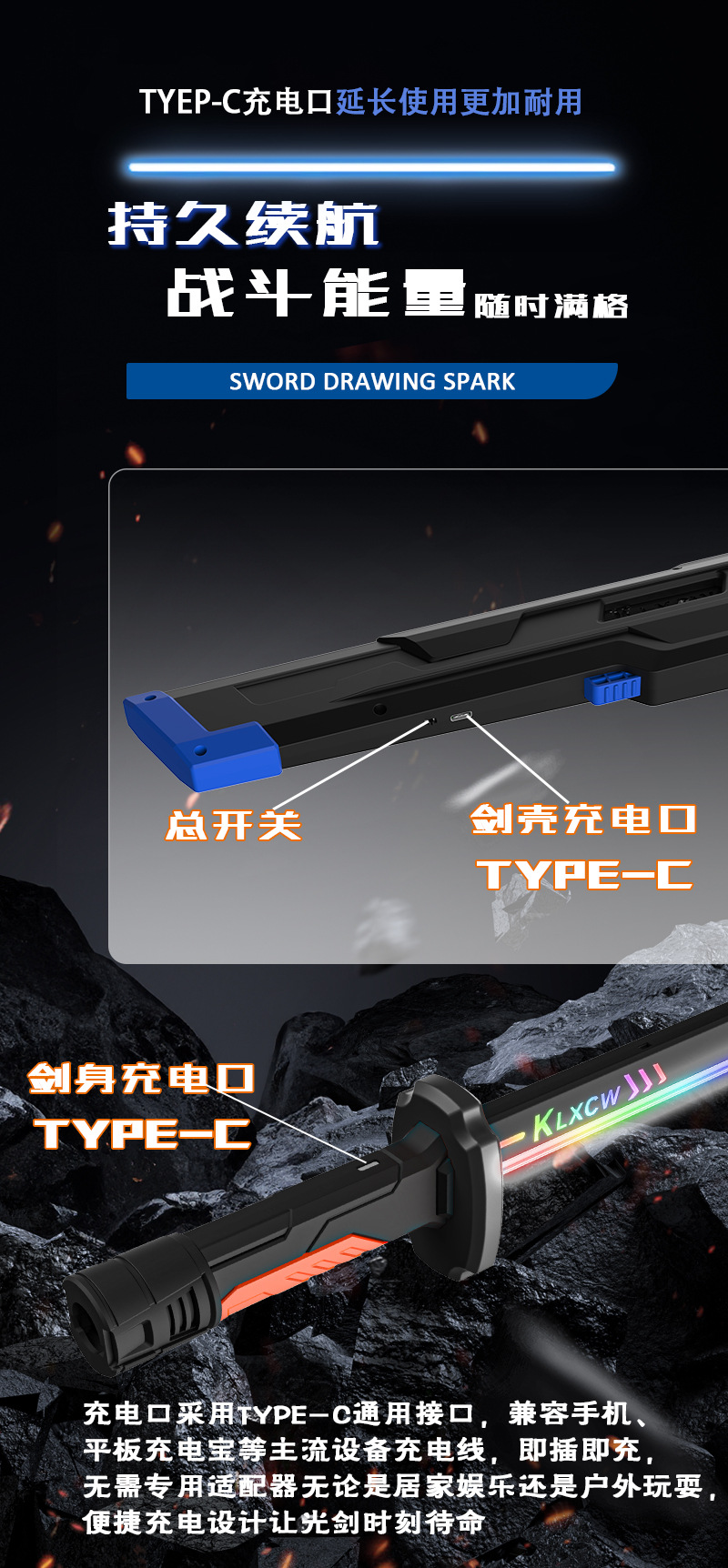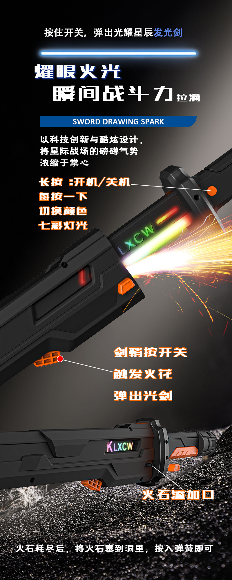 57cm super large spark sheath light sword-with spray [dark night silver] 20 flint