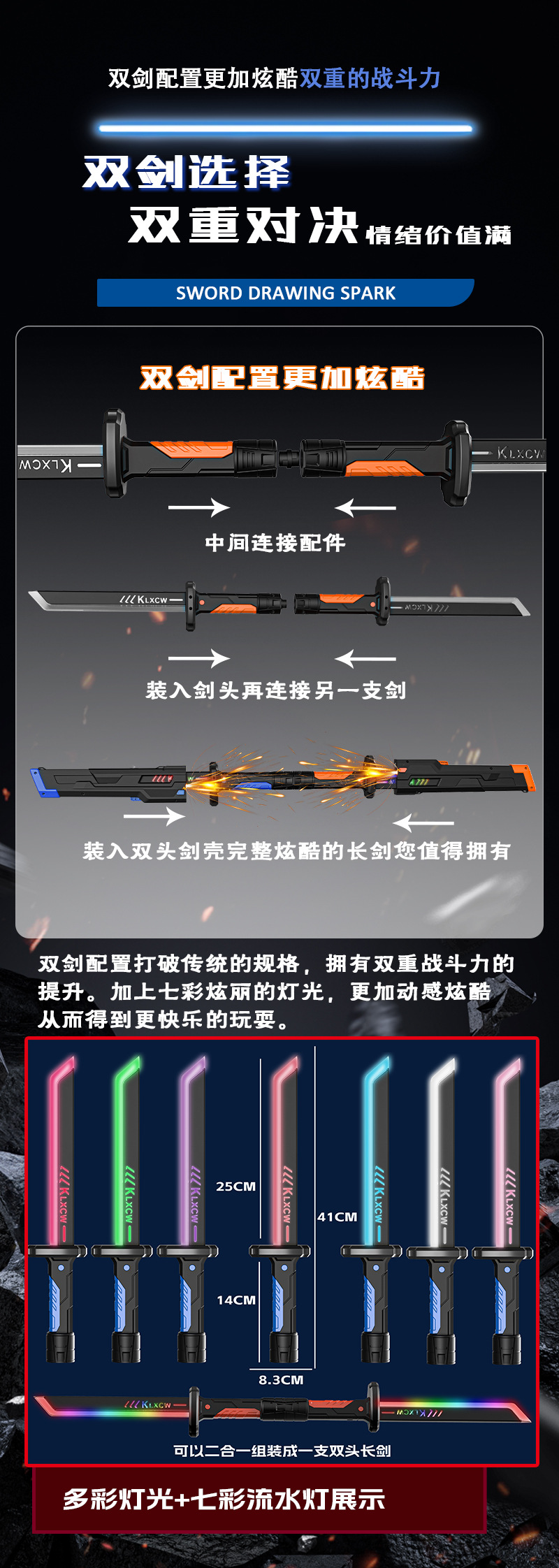 57cm super large spark sheath light sword-with spray [dark night silver] 40 flint
