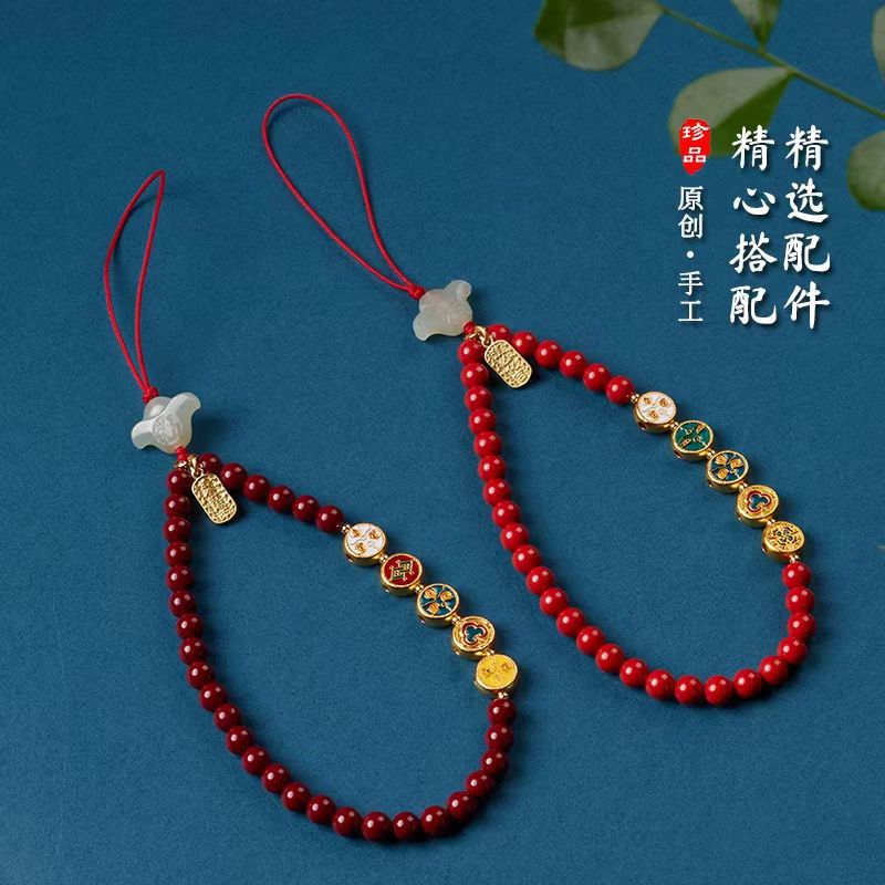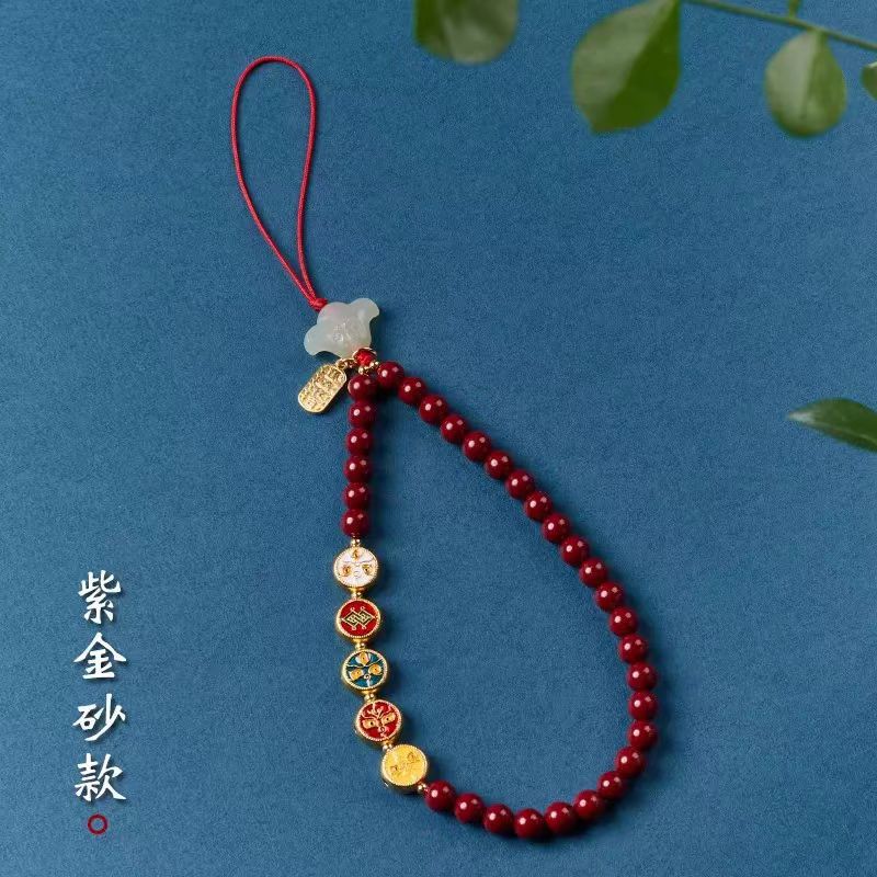 cinnabar five gods of wealth mobile phone charm