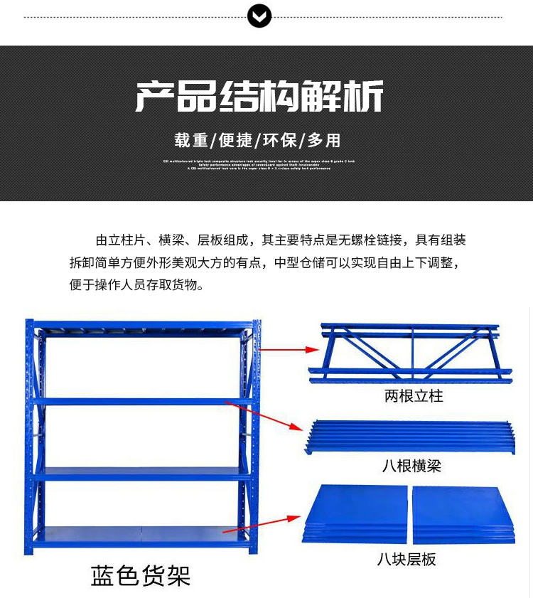 2000*500*2000*4 * main frame * laminate shelf * 100 * blue * blue four-layer main frame