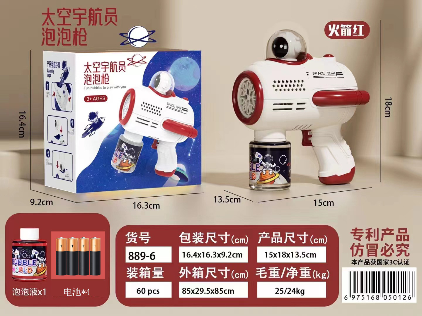 astronaut bubble machine red [complimentary battery]