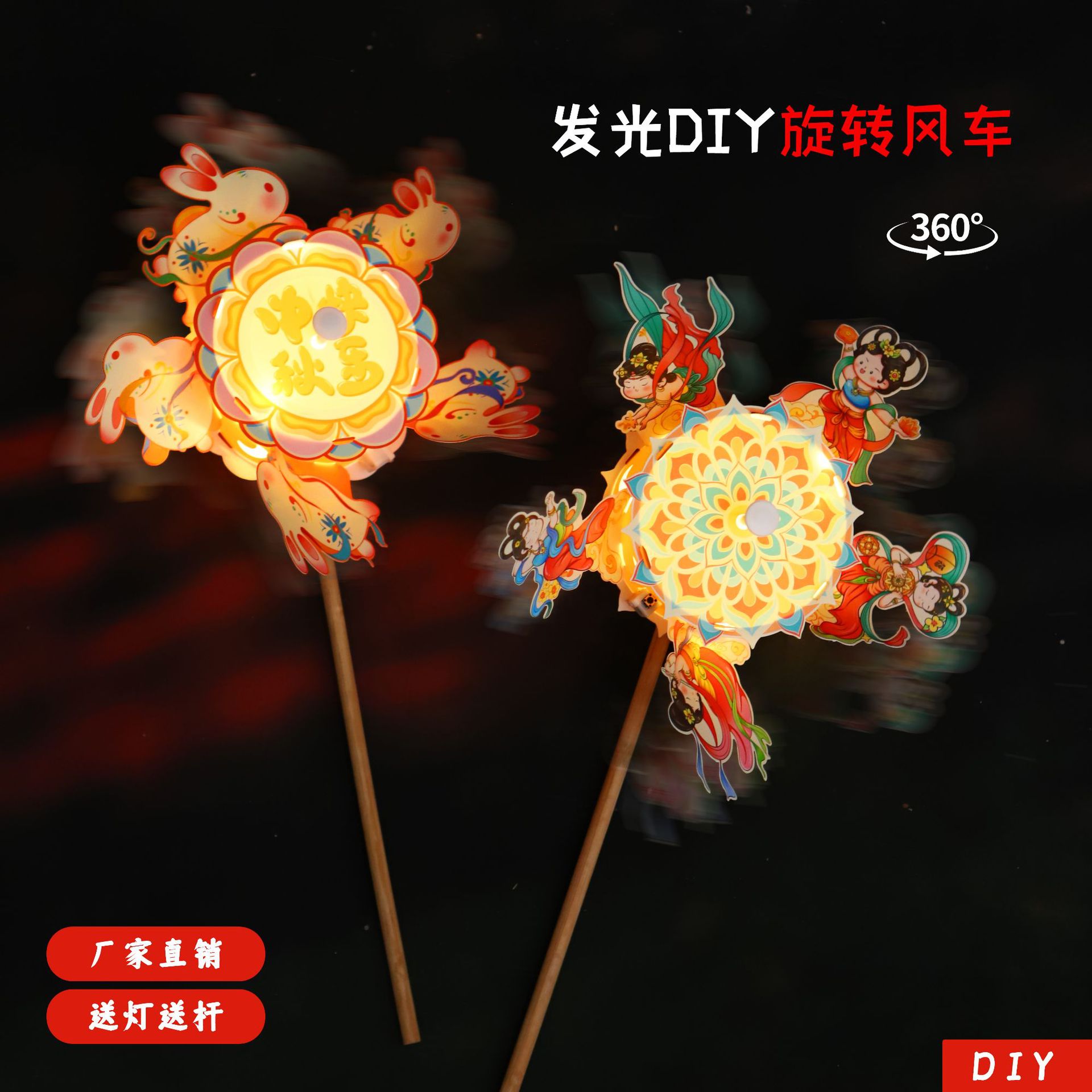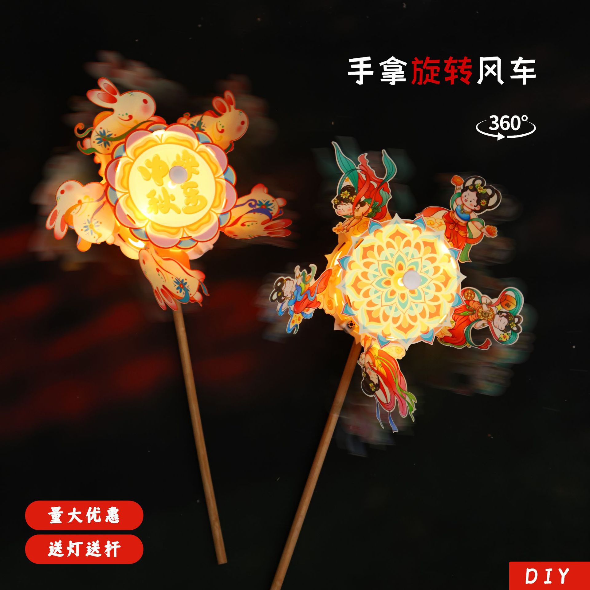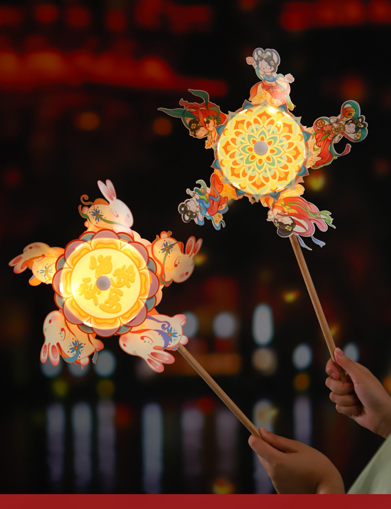 rotating luminous hand windmill h-happy mid-autumn festival