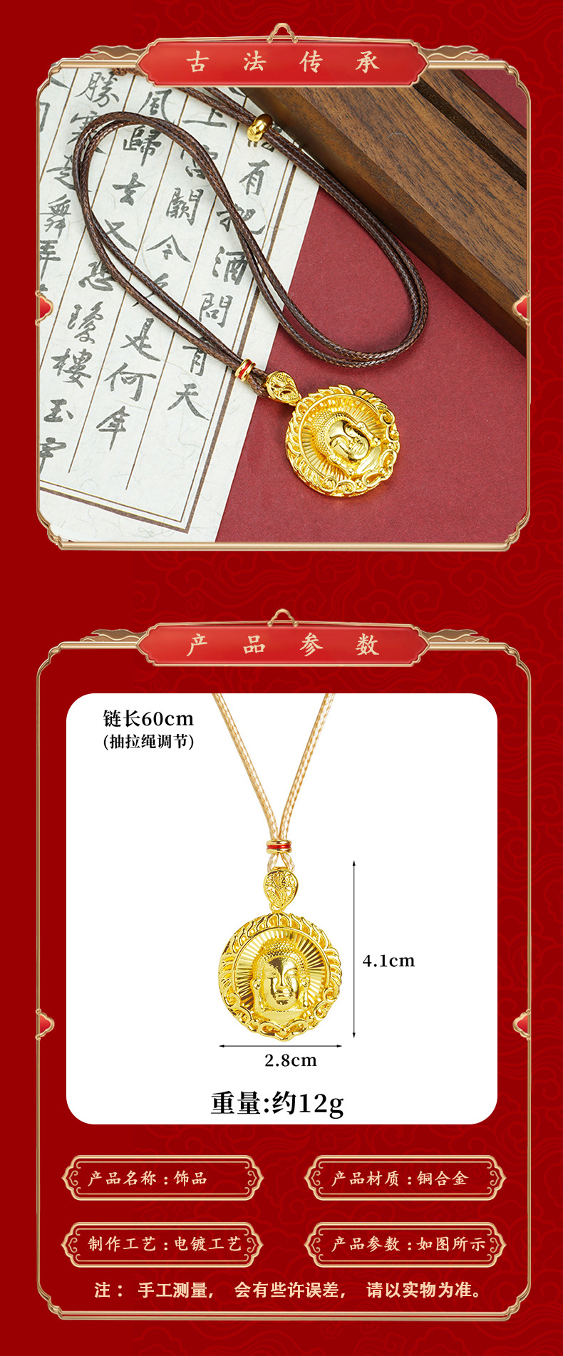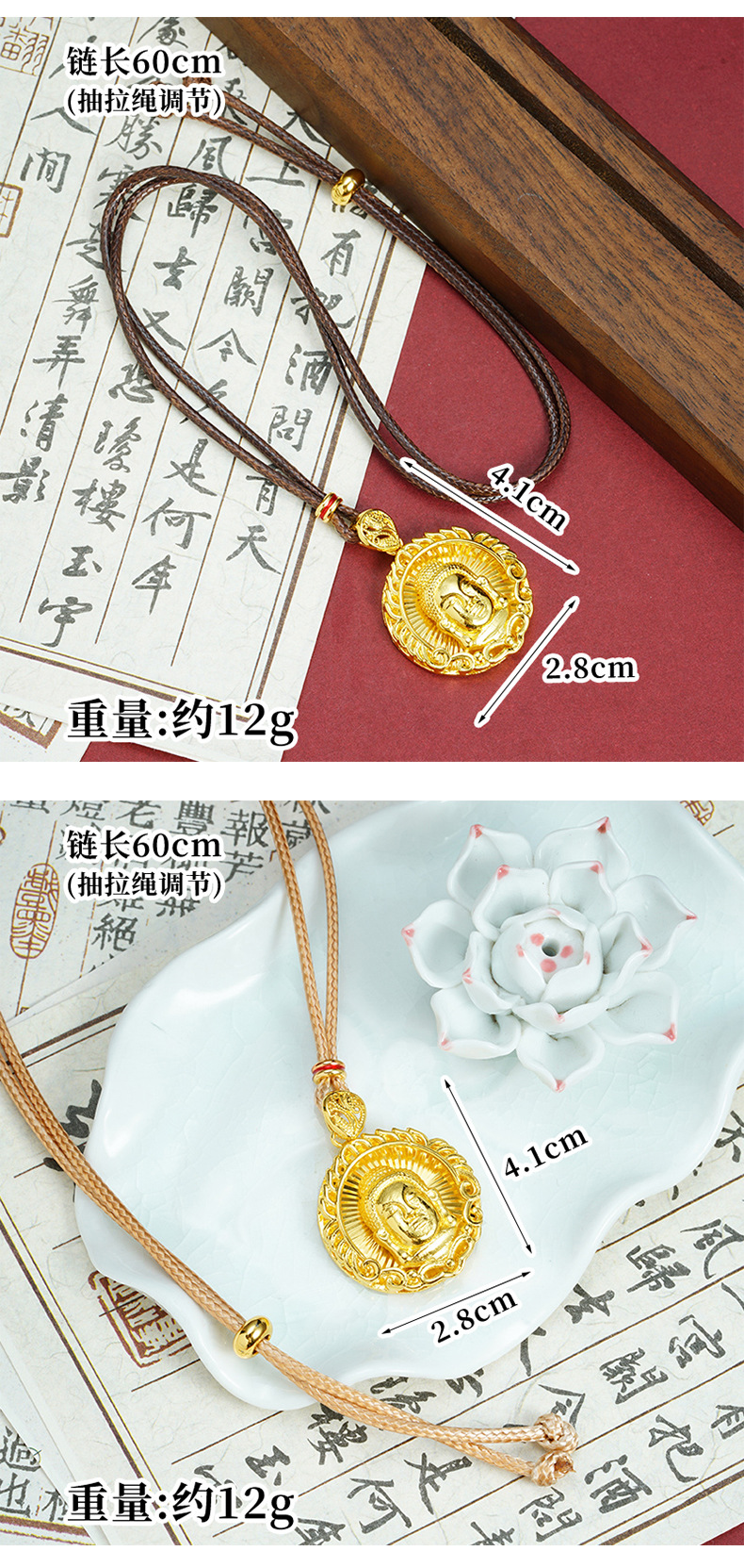 x3517 tathagata buddha necklace-brown rope
