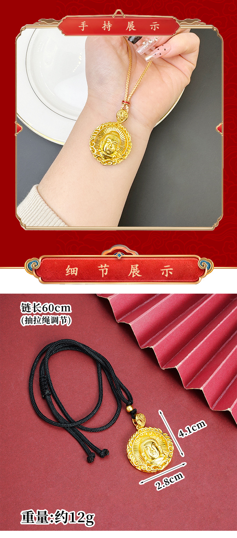 x3516 tathagata buddha necklace-black rope