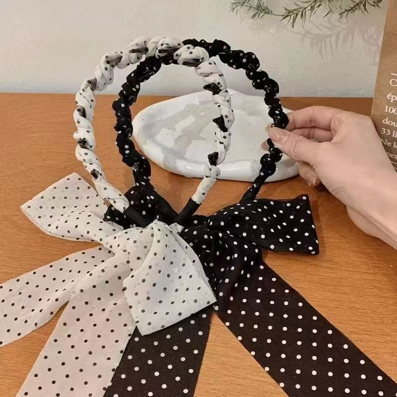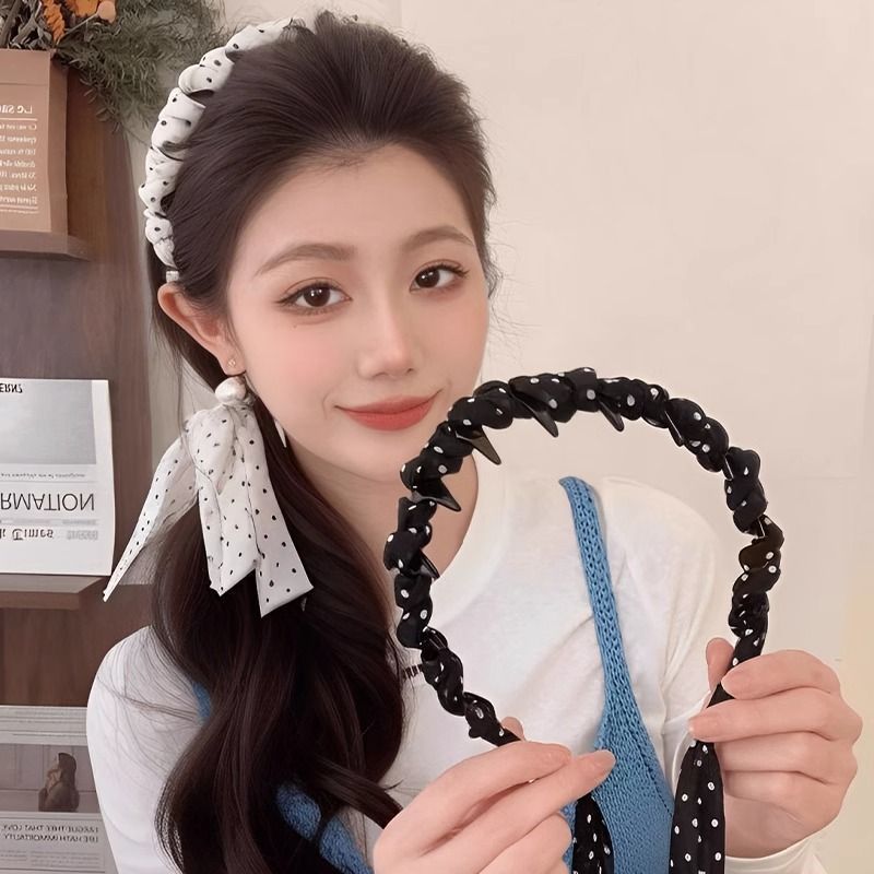 elegant high skull top super fairy wave point ribbon toothed hair hoop high-grade female gentle bow tie hair accessories 中文版