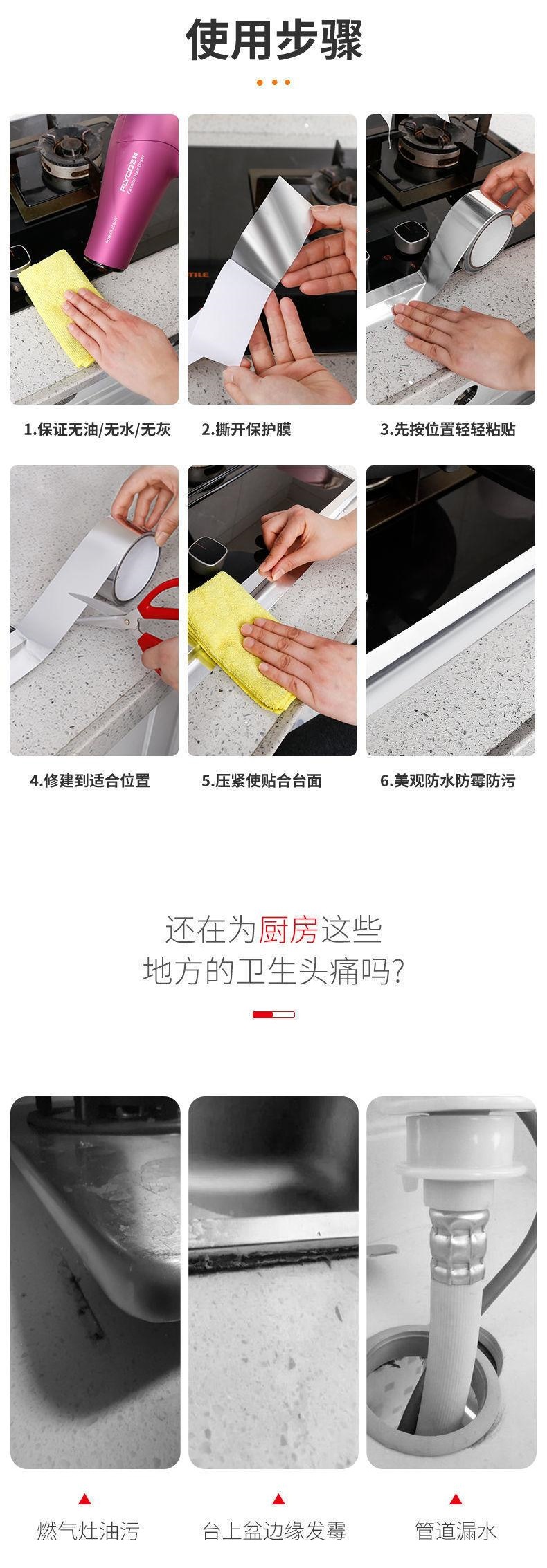 kitchen stove high temperature resistant aluminum foil oil-proof seam mildew-proof edge banding sink sink waterproof gap sticker self-adhesive 中文版