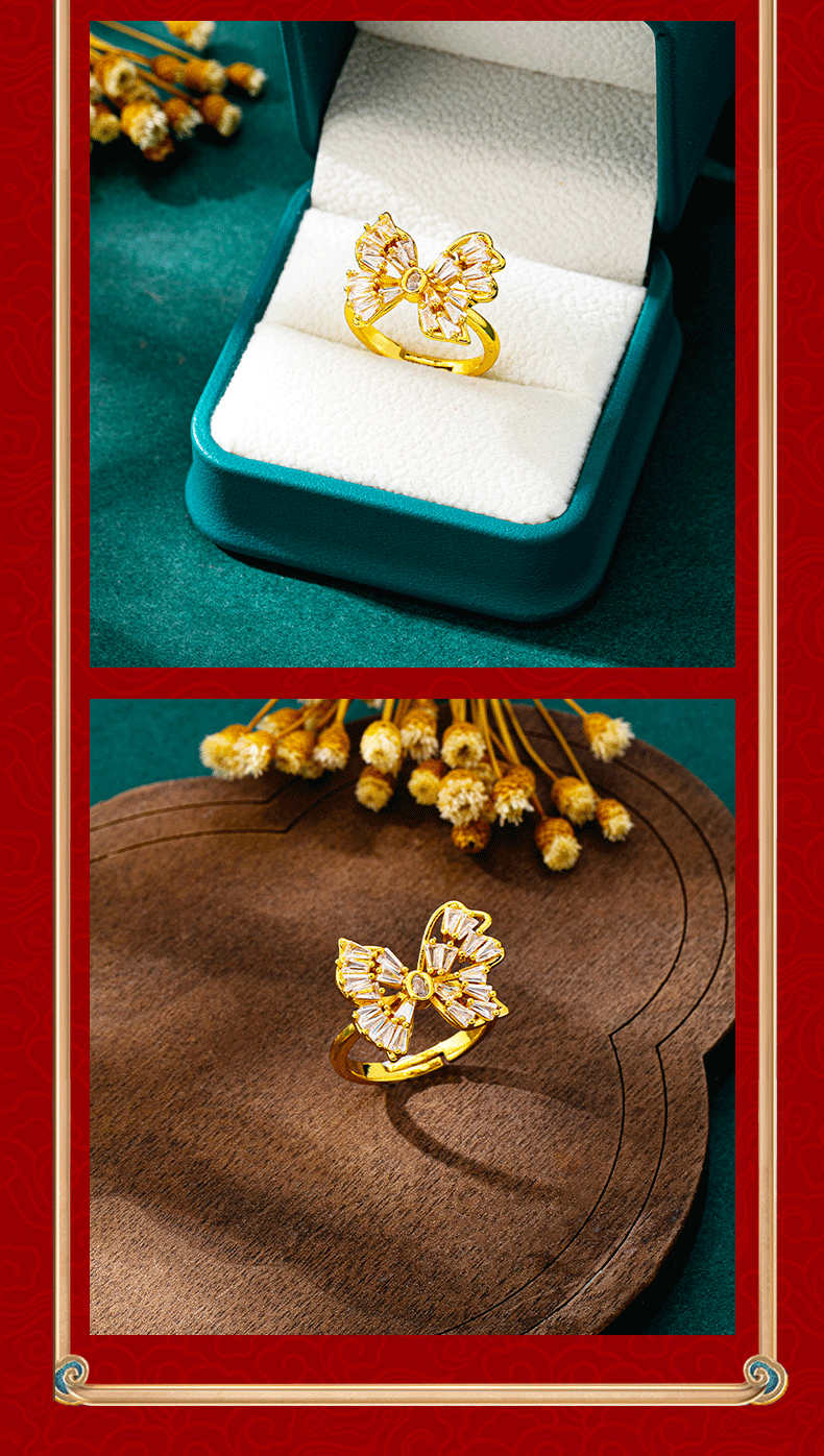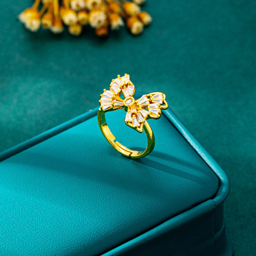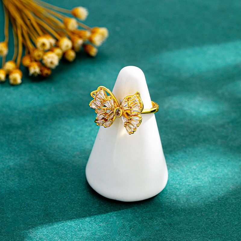 popular exquisite butterfly opening ring women's vietnam placer gold hollow inlaid zirconium index finger ring cross-border no color fading accessories 中文版