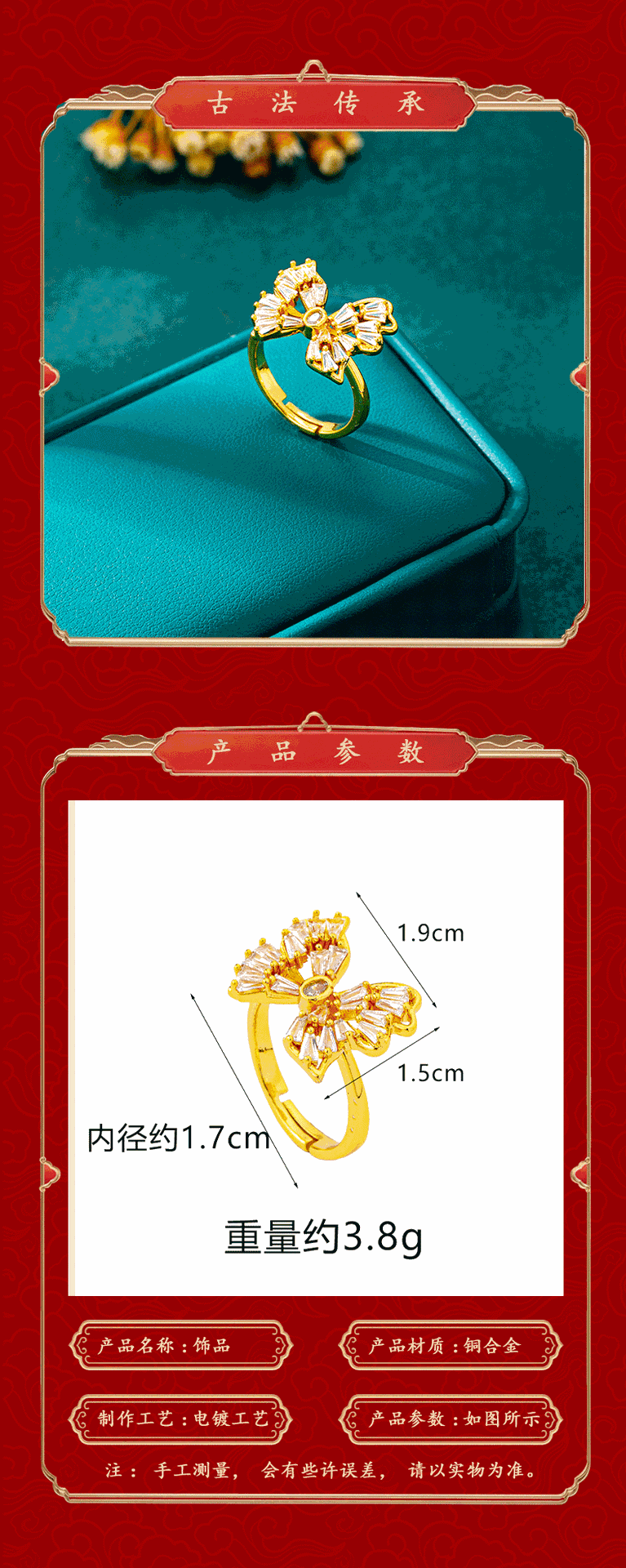 j24353 inlaid zirconium butterfly ring ¥0.0 9999 piece available
