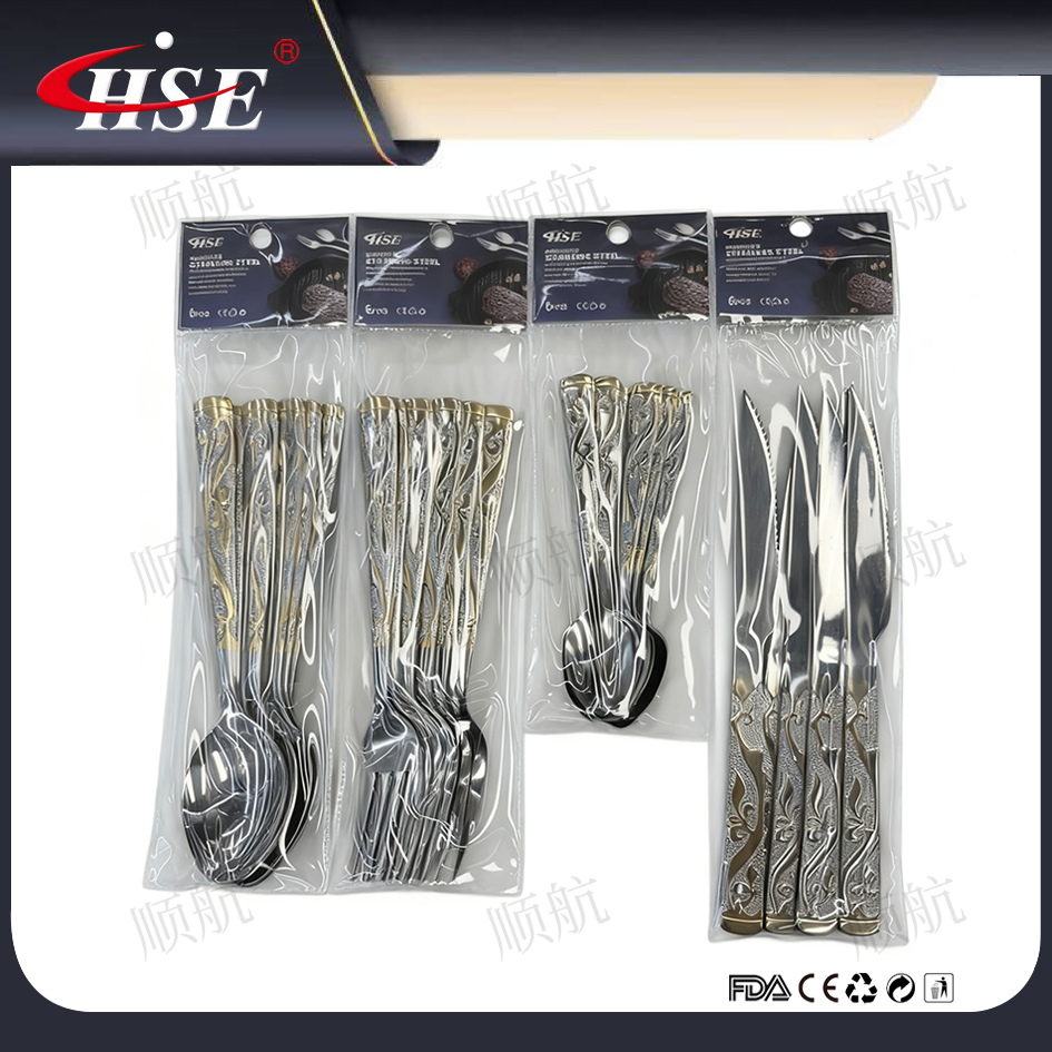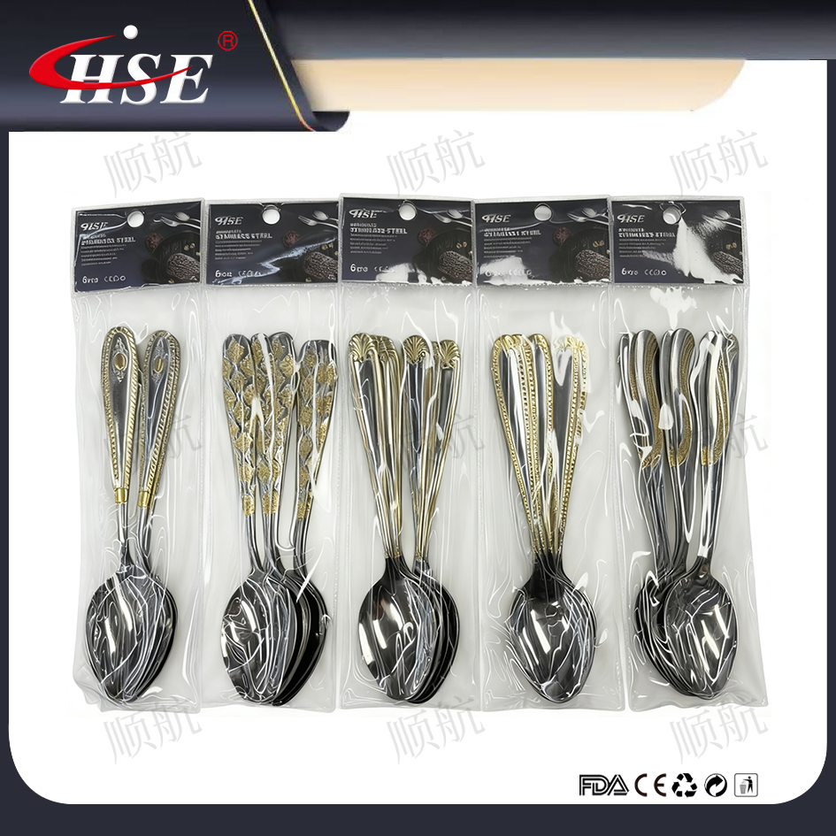 stainless steel tableware spoon fork dessert spoon dinner knife steak knife natural color gold plated supermarket foreign trade wholesale 中文版