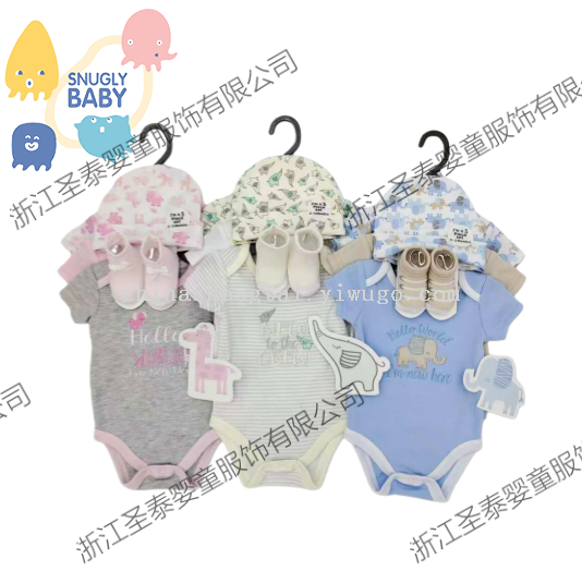 foreign trade summer baby's romper hat socks set baby climbing clothes animal set factory direct sales 中文版