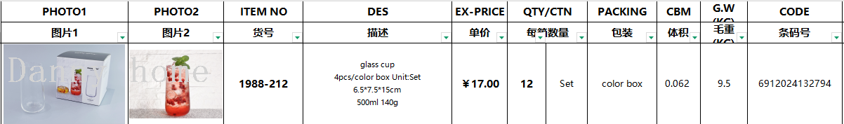 danny home high borosilicate glasses heat-resistant explosion-proof household large-capacity water cup 中文版