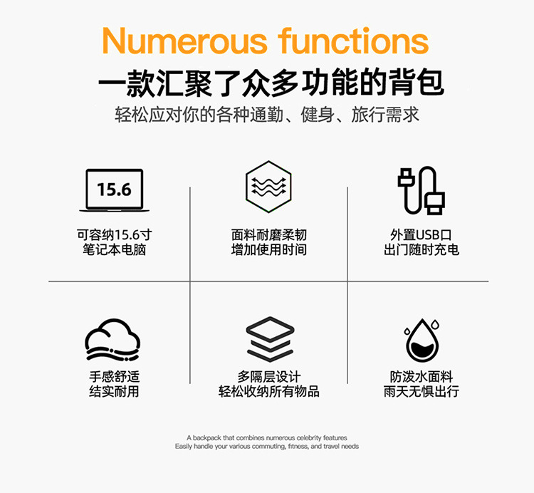 cross-border backpack men's business commute backpack college student laptop bag multifunctional travel backpack 中文版