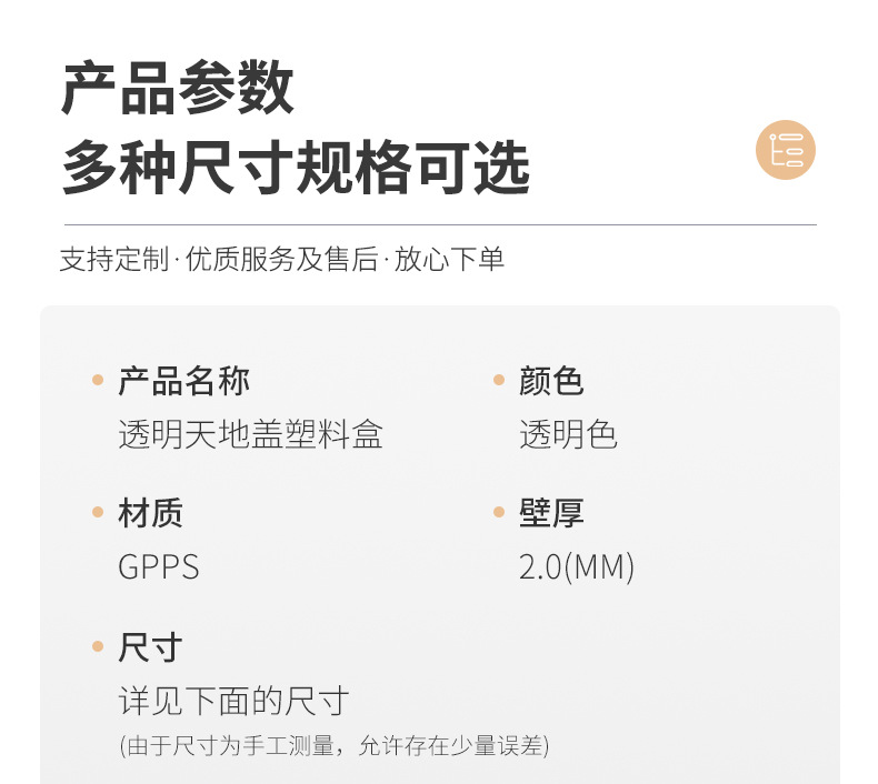 5.5*5.5*4.5cm (thin); transparent
