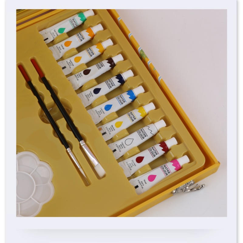 watercolor pen small yellow duck 68-piece children's painting kit 68 marker pen stationery gift box brush environmentally friendly wooden 中文版