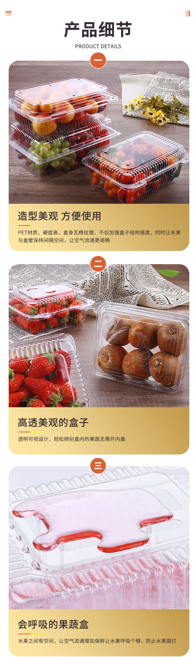 3 pcs, fruit container large size (100 pcs)