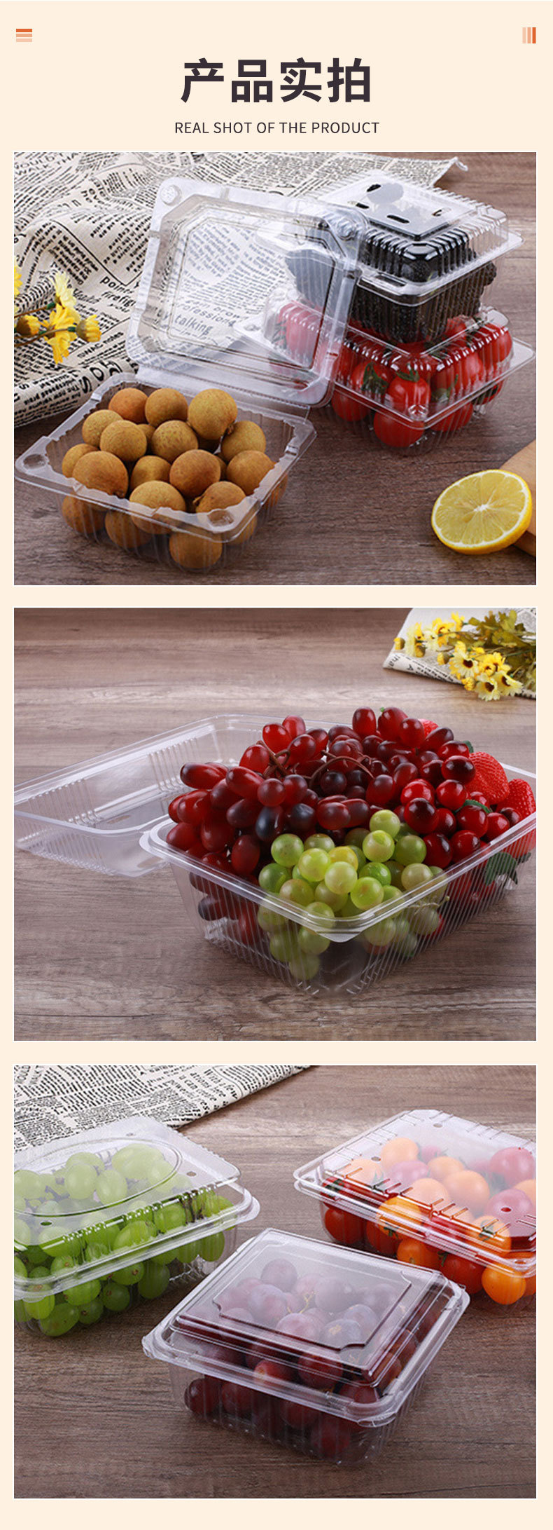 6 pcs, fruit container large size (100 pcs)