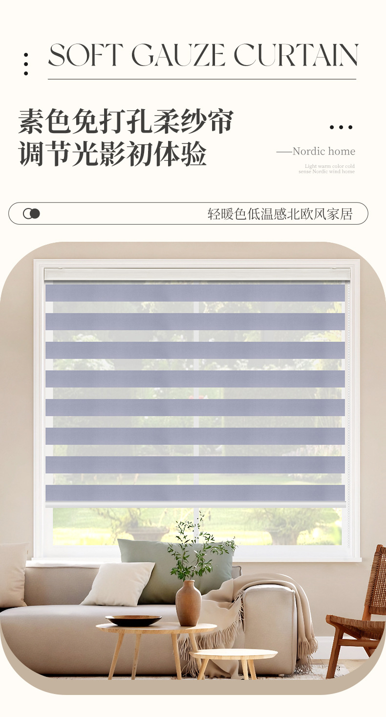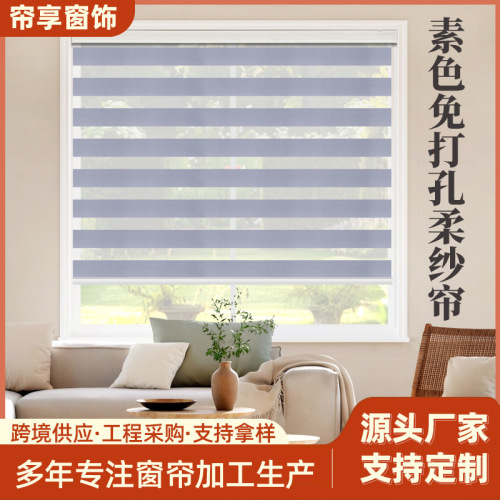 cross-border custom punch-free blinds double roller blind spot plain soft gauze curtain roll curtain small bathroom curtain 中文版