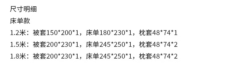 | 1.2m bed sheet three-piece set (quilt cover 150 * 200cm) | ¥294.3 | 9998 set available |