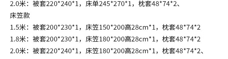 | 2.0m bed sheet four-piece set (quilt cover 220 * 240cm) | ¥388.8 | 9993 set available |
