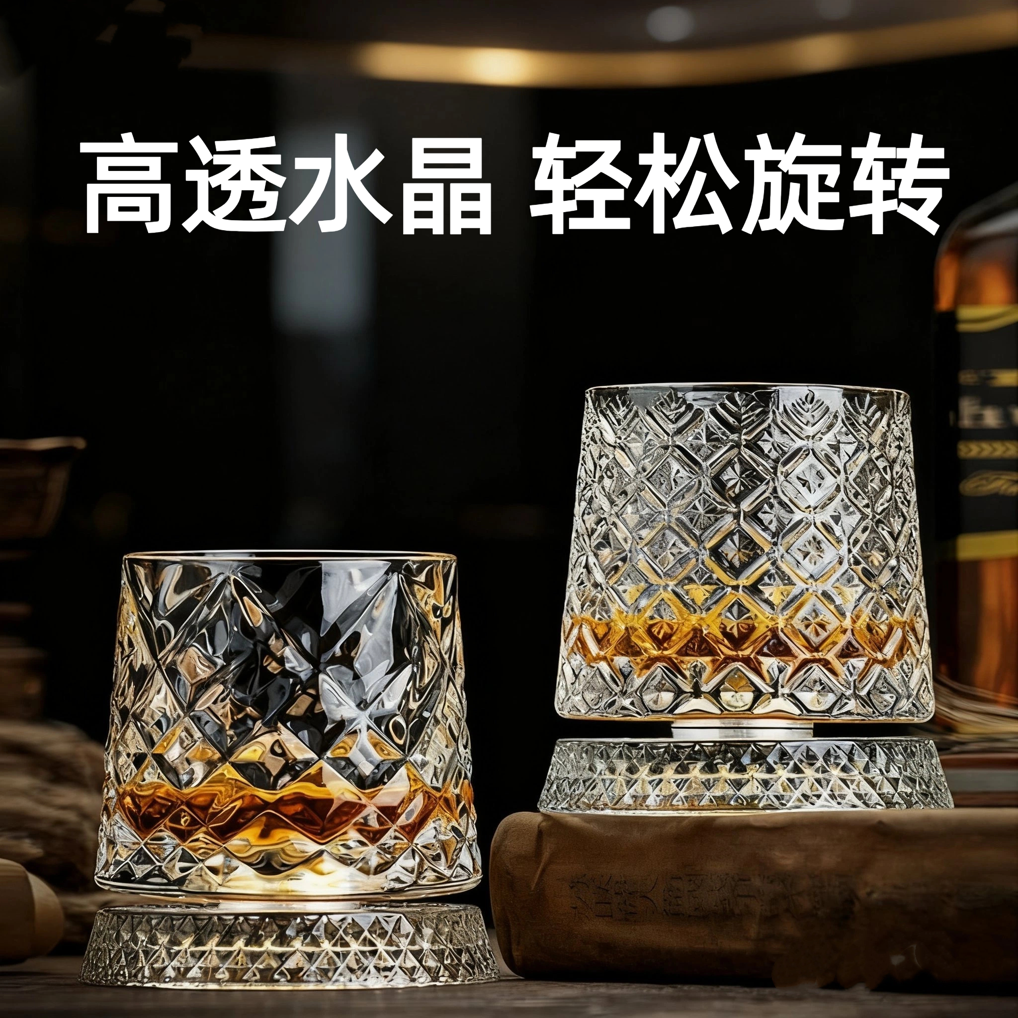 internet celebrity high-grade rotating whiskey shot glass wine glass light luxury high-grade home glass cups 中文版