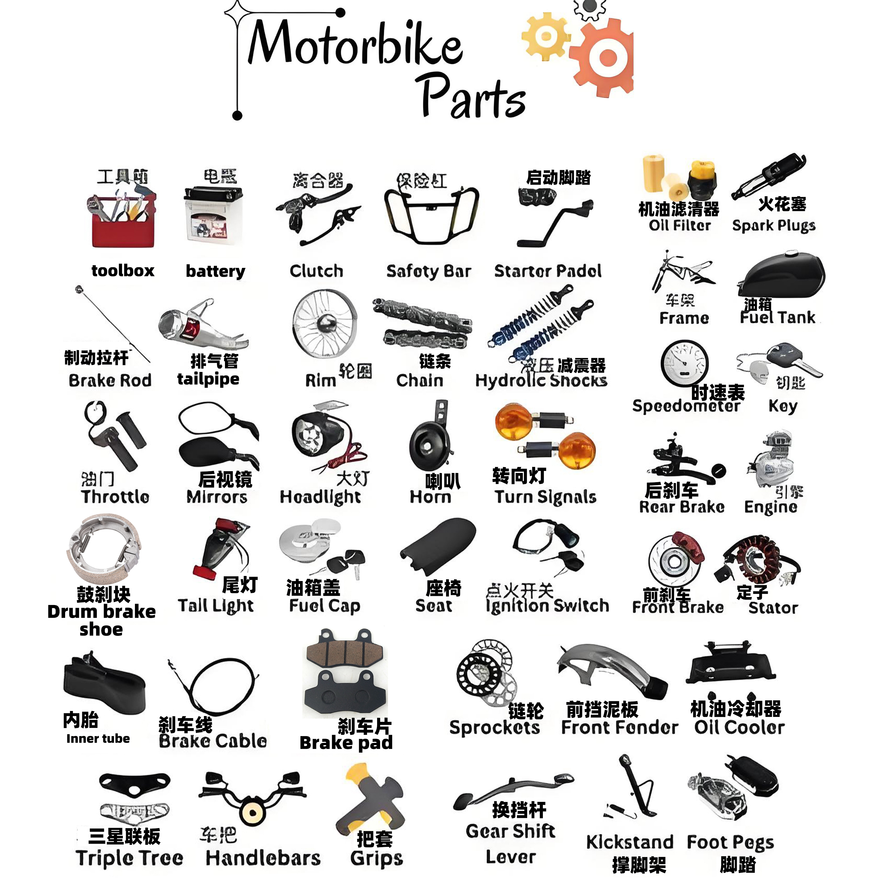 motorcycle accessories one-stop supply motorcycle special accessories brake pad shock absorber special pieces 中文版