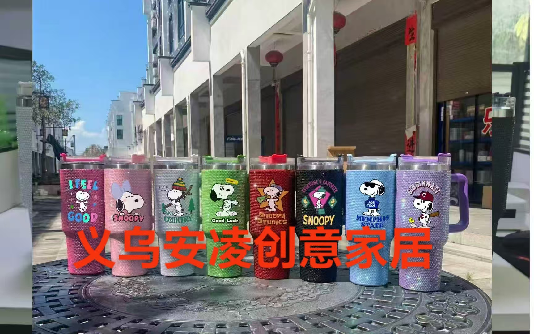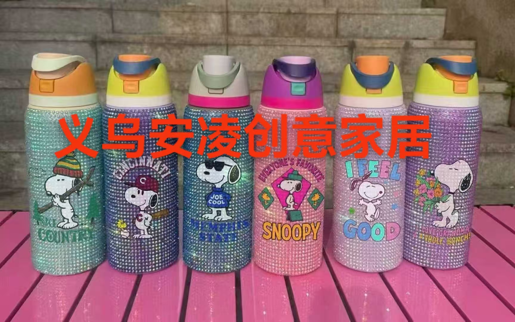 new snoopy stitch diamond cup car large capacity stainless steel stick-on crystals cartoon 40 straw large ice cup 中文版