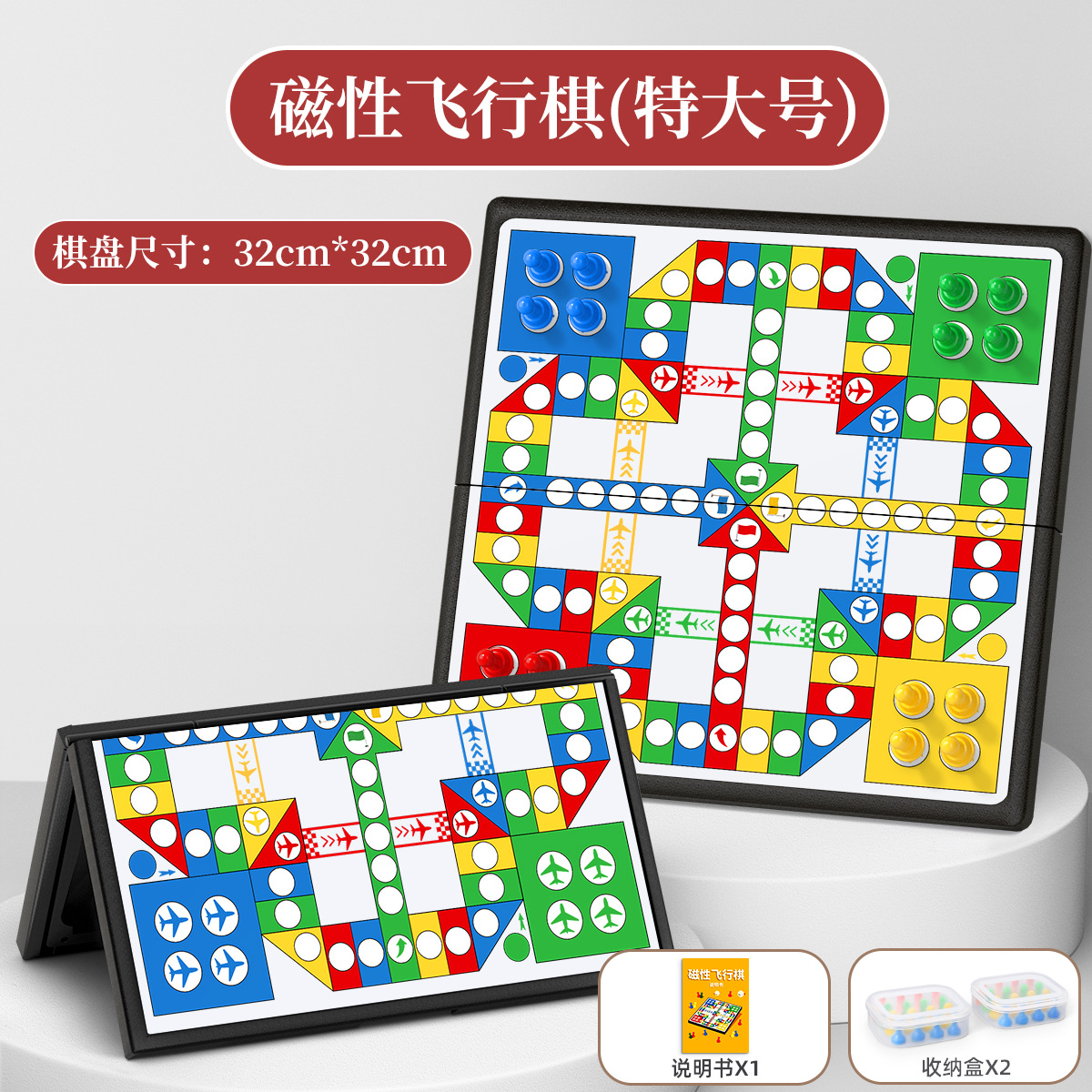 32 * 32cm [extra large magnetic aeroplane chess] (instructions + storage box + backup)