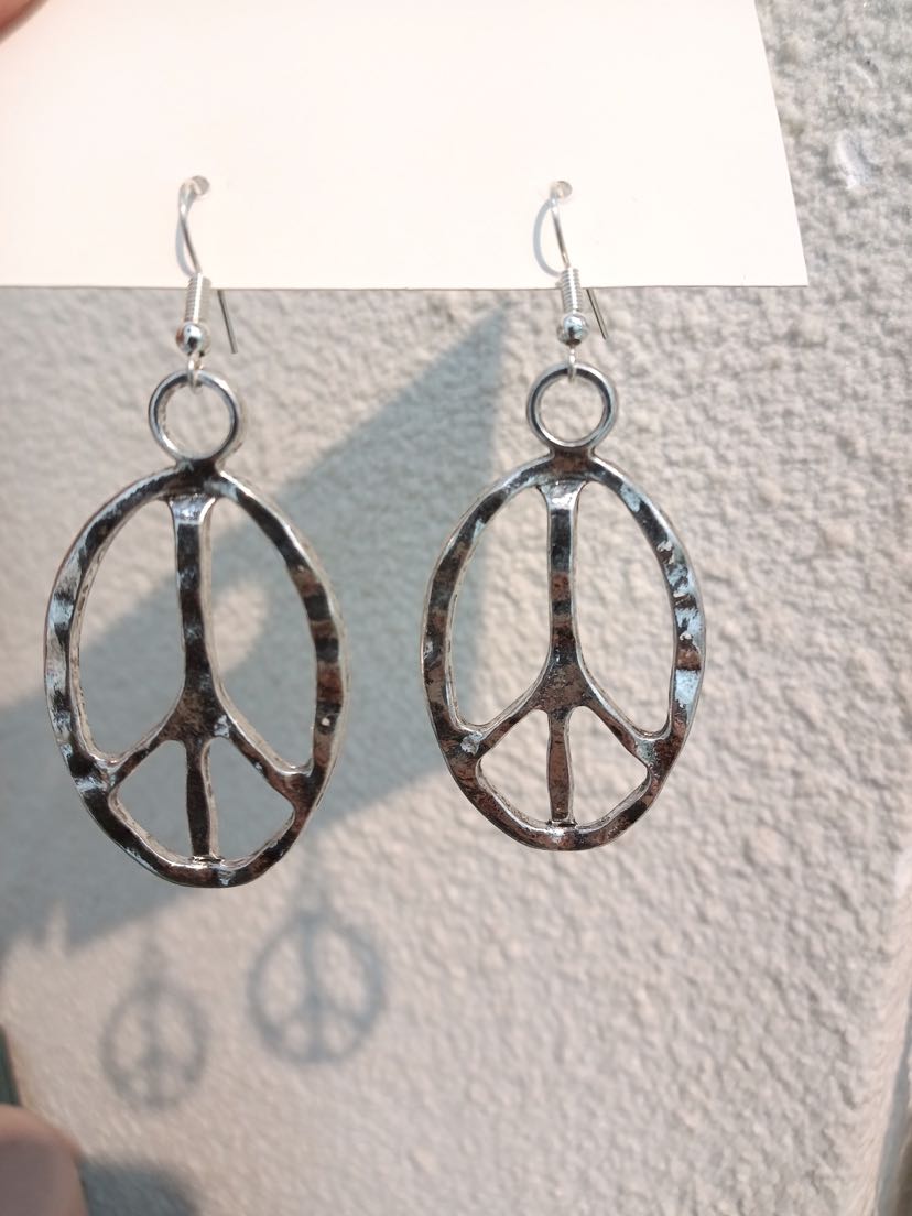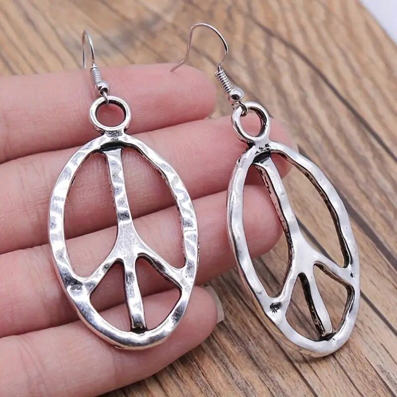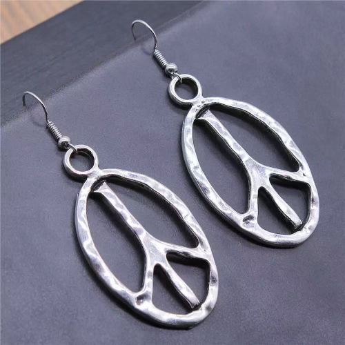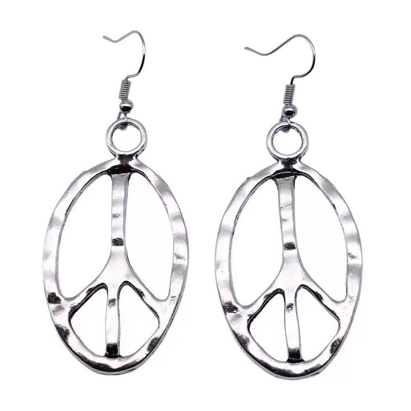 cross-border hot selling cross-border sold jewelry vintage simple handmade jewelry oval peace symbol earrings eardrops 中文版