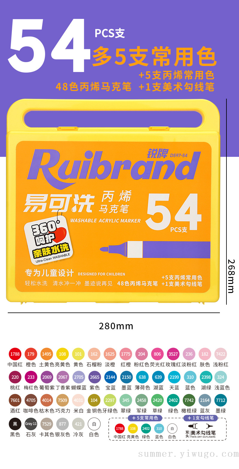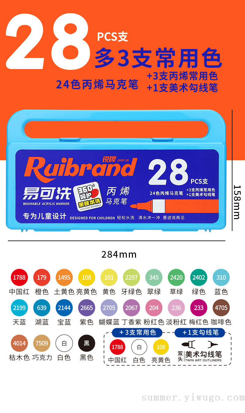 easy washable acrylic marker pen only for pupils drawing pen children diy watercolor pen soft head washable paintbrush 中文版