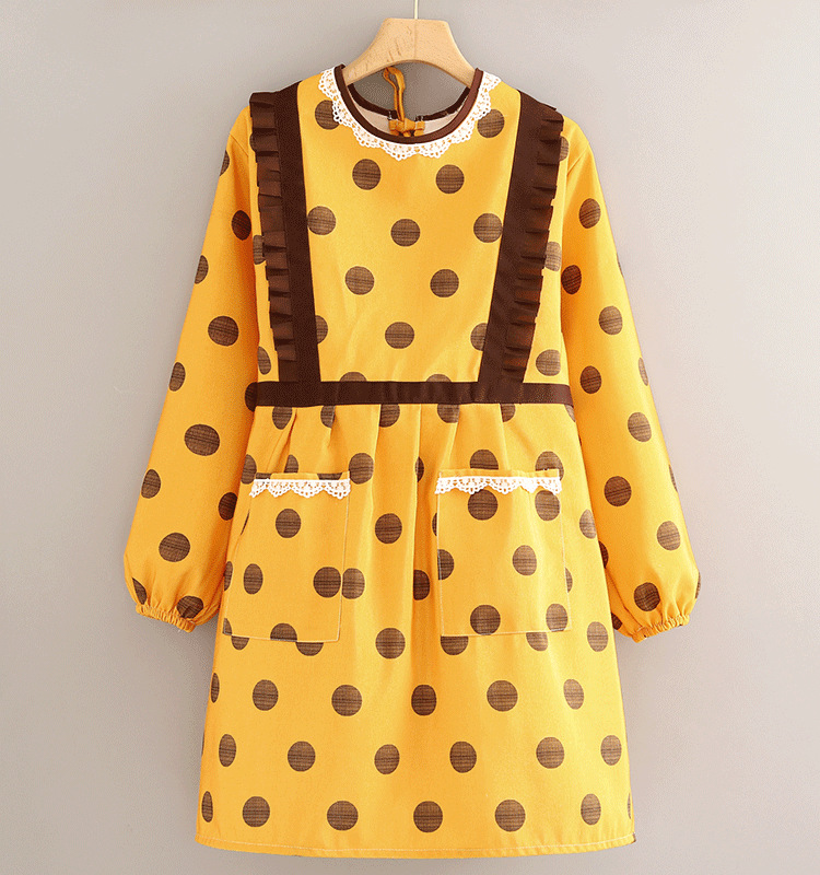 canvas long sleeve lace skirt yellow with polka dots