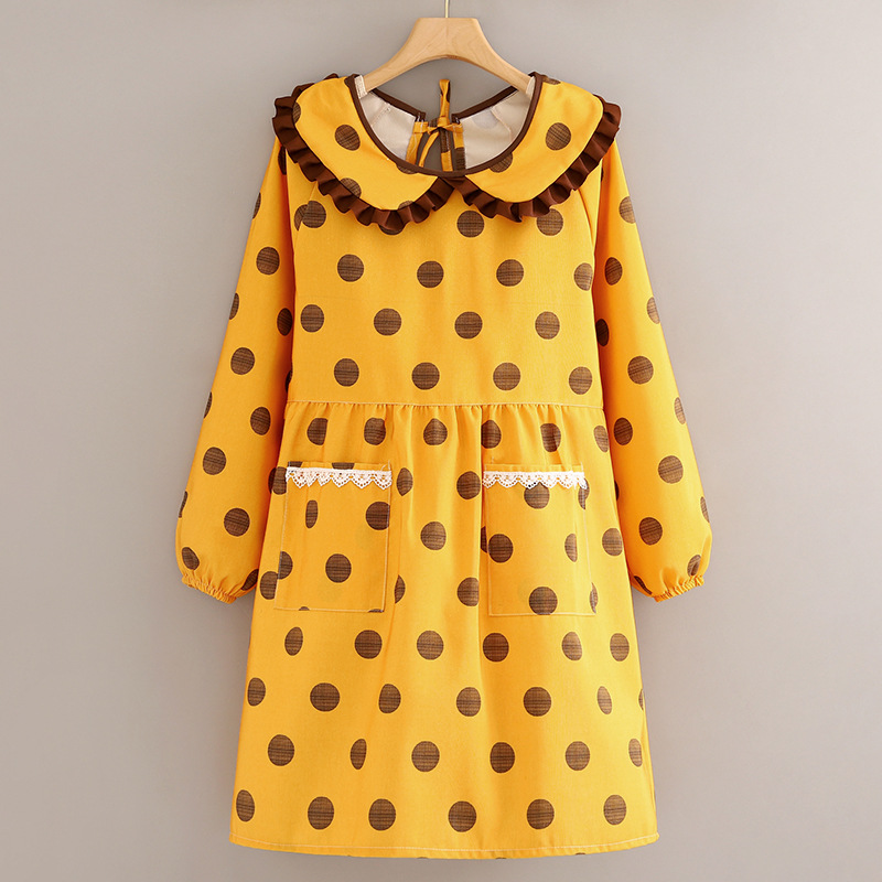 long sleeve canvas doll collar-yellow with polka dots + apron