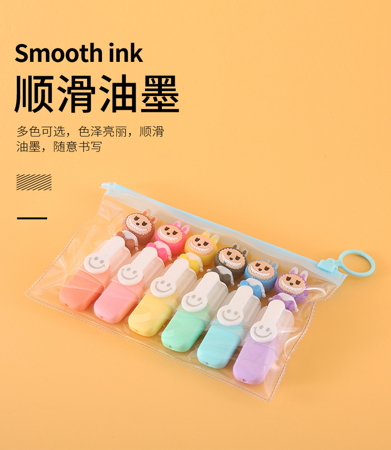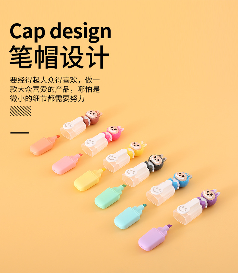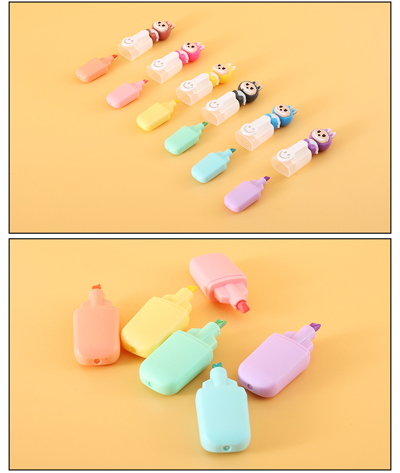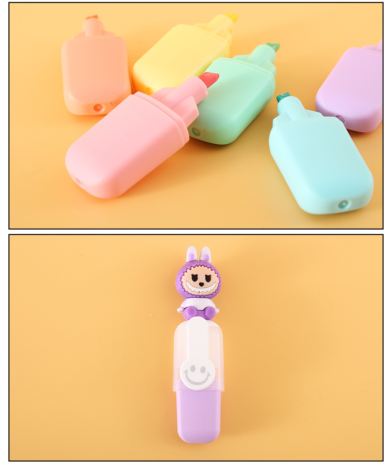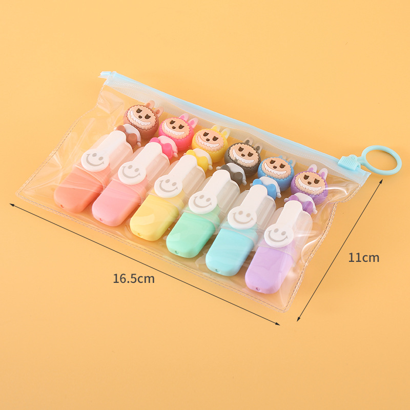 labubu mini 6 colors fluorescent pen set cute cartoon drawing pen good-looking student color marking pen