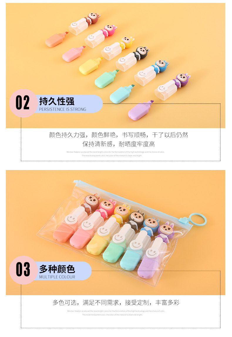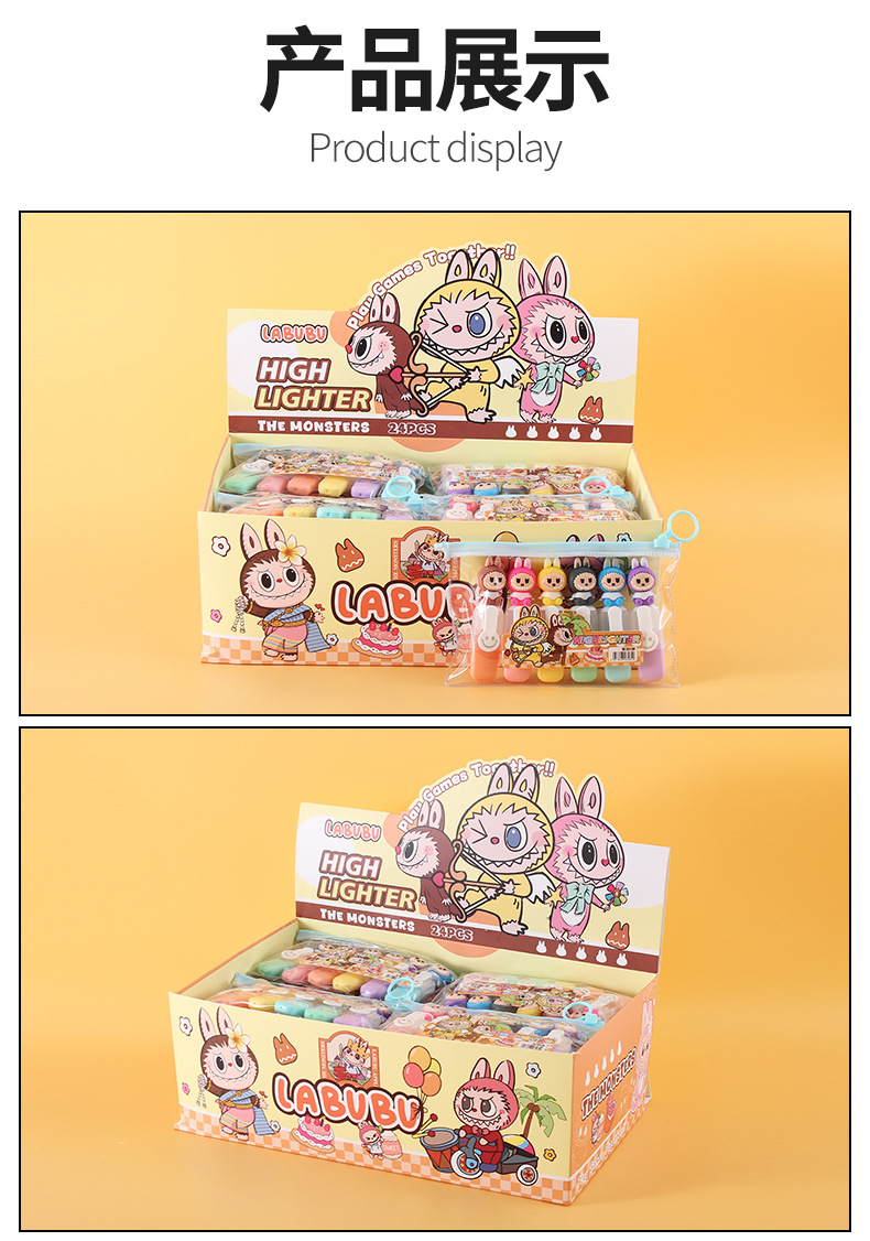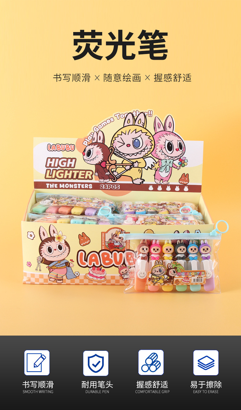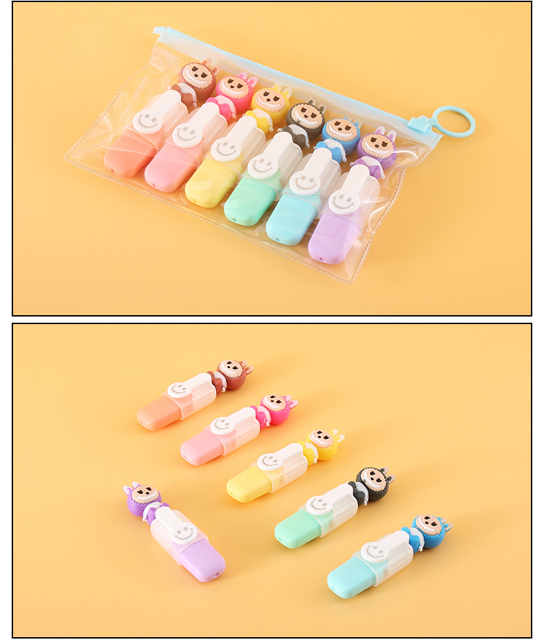 labubu mini 6 colors fluorescent pen set cute cartoon drawing pen good-looking student color marking pen